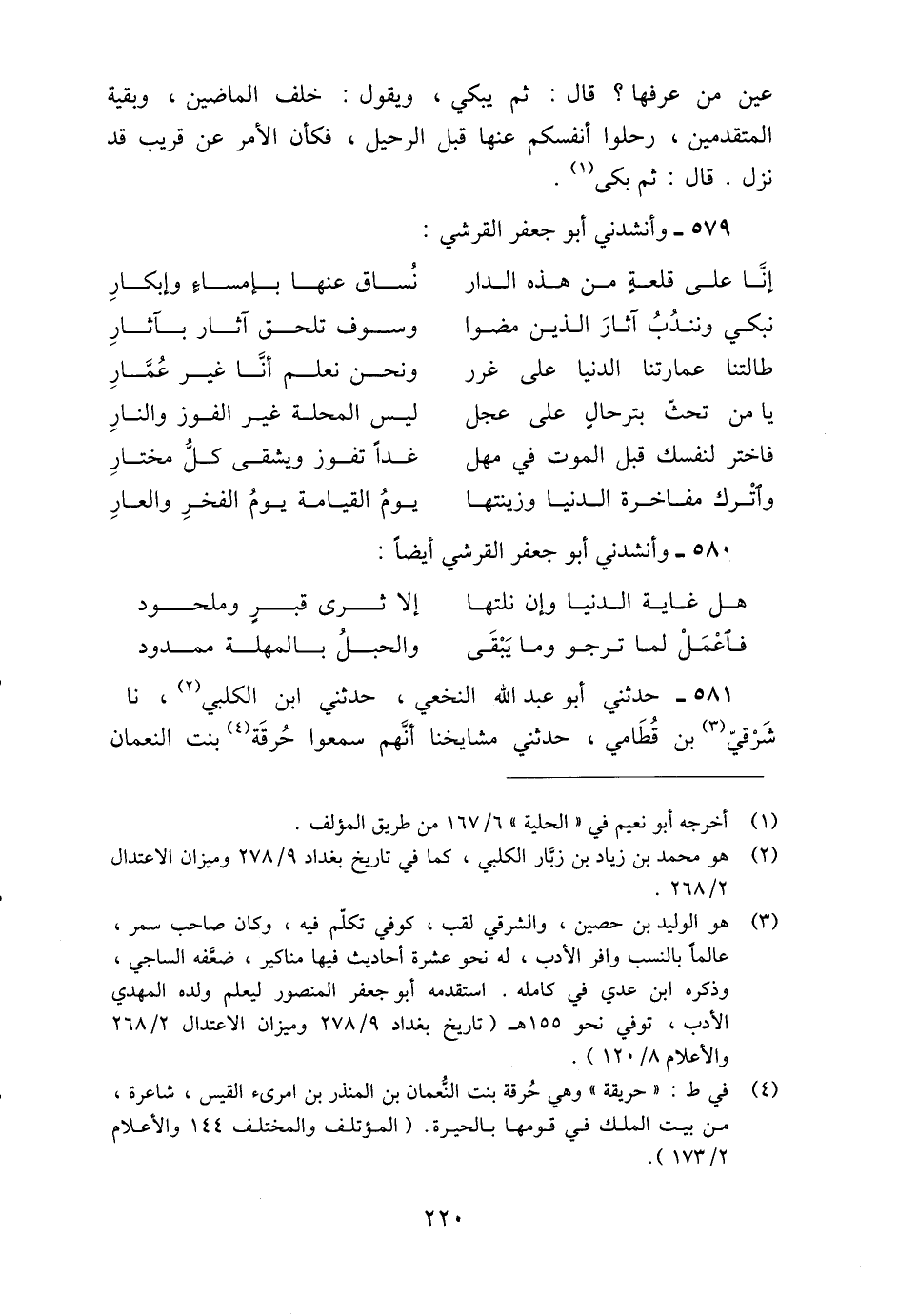 511 - حَدَّثَنِي أَبُو عَبْدِ اللَّهِ النَّخَعِيُّ، حَدَّثَنِي ابْنُ الْكَلْبِيِّ، نا شَرْقِيُّ بْنُ قُطَامِيٍّ، حَدَّثَنِي مَشَايِخُنَا، أَنَّهُمْ سَمِعُوا حُرْقَةَ بِنْتَ النُّعْمَانِ، -[221]- تُنْشِدَ: