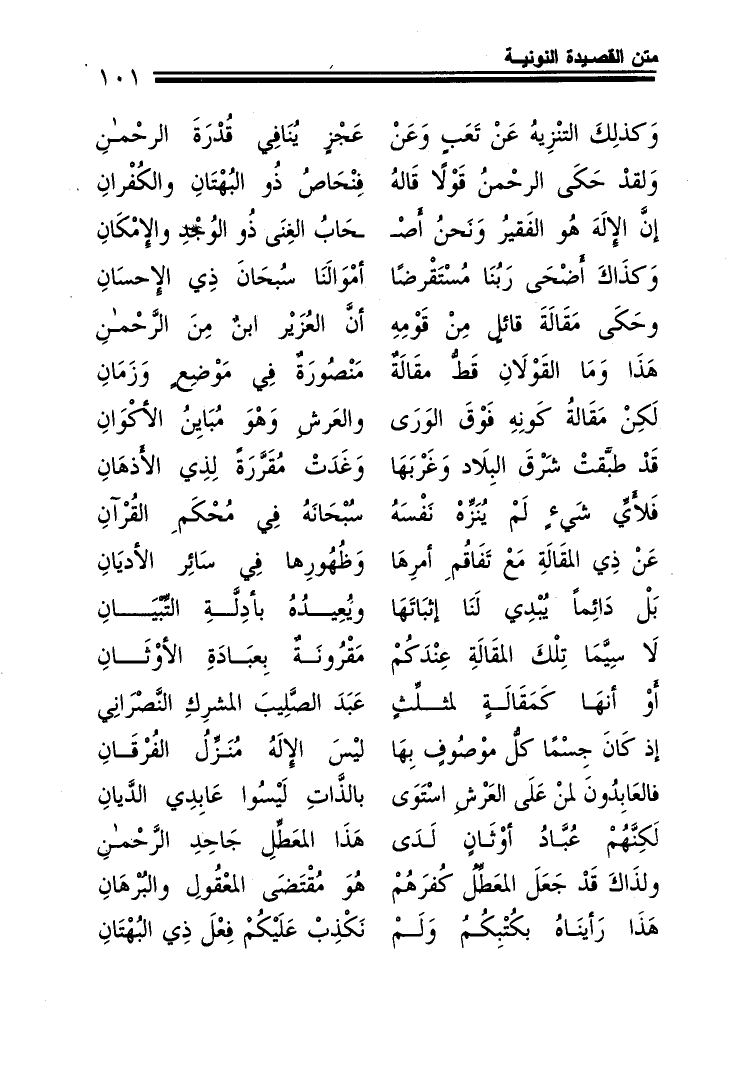 وكذلك التنزيه عن تعب وعن ... عجز ينافي قدرة الرحمن
