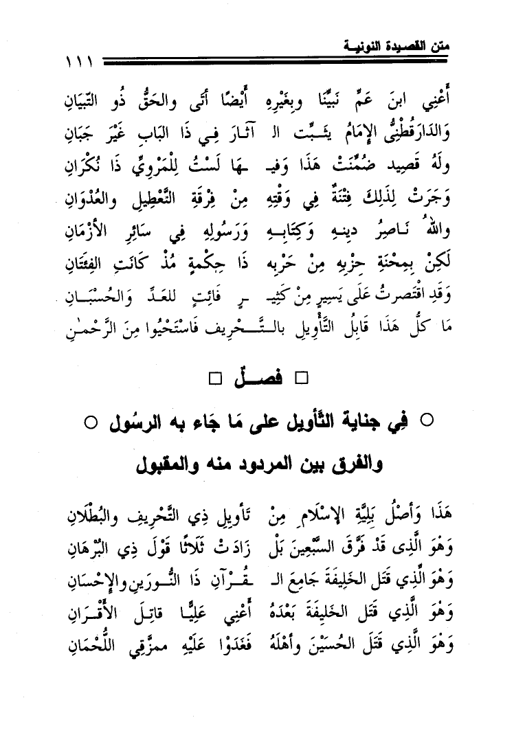 هذا وأصل بلية الإسلام من ... تأويل ذي التحريف والبطلان