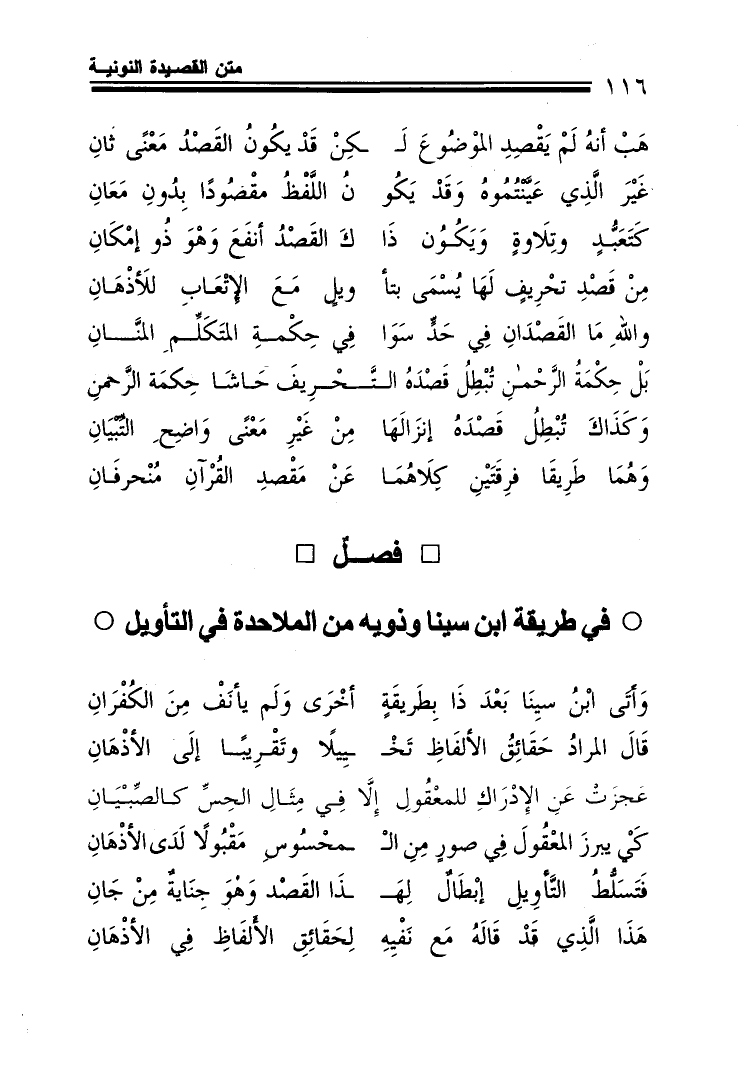 وأتى ابن سينا بعد ذا بطريقة ... أخرى ولم يأنف من الكفران