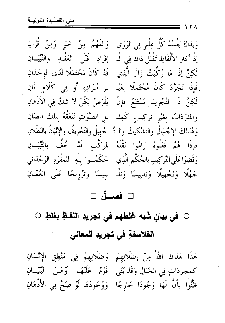 وبذاك يفسد كل علم في الورى ... والفهم من خبر ومن قرآن