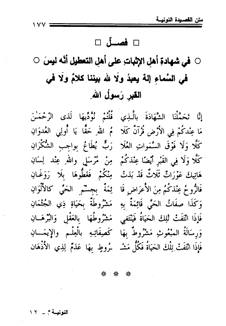 فصل: في شهادة أهل الإثبات على أهل التعطيل أنه ليس في السماء إله يعبد ولا لله بيننا كلام ولا في القبر رسول الله