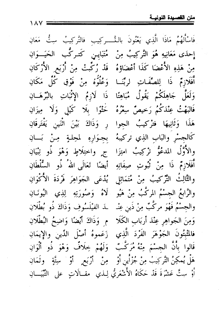 والثالث التركيب من متماثل ... يدعى الجواهر فردة الأكوان