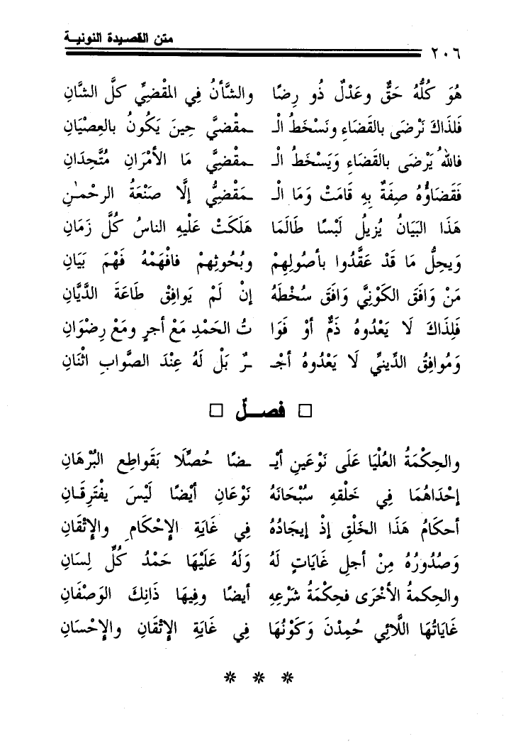 فقضاؤه صفة به قامت وما ... المقضي إلا صنعة الرحمن