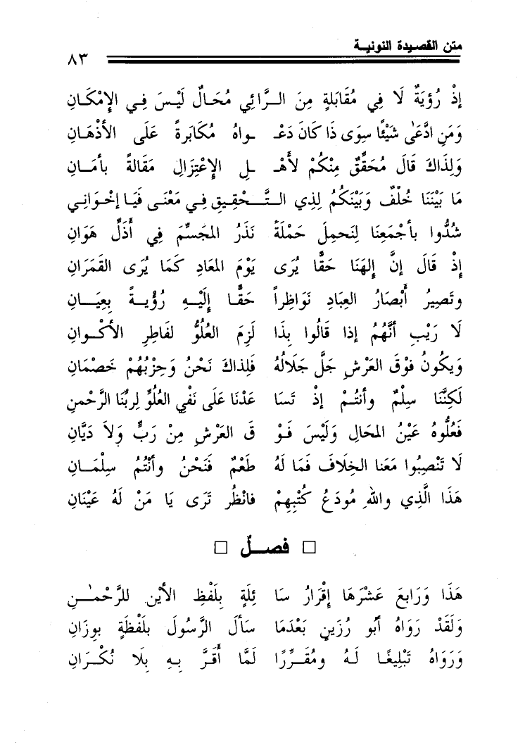 ويكون فوق العرش جل جلاله ... فلذاك نحن وحزبهم خصمان
