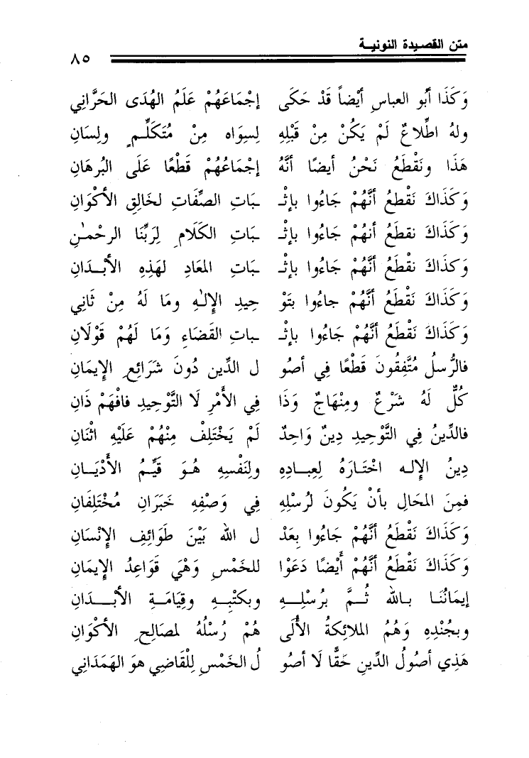 هذي أصول الدين حقا لا أصو ... ل الخمس للقاضي هو الهمداني