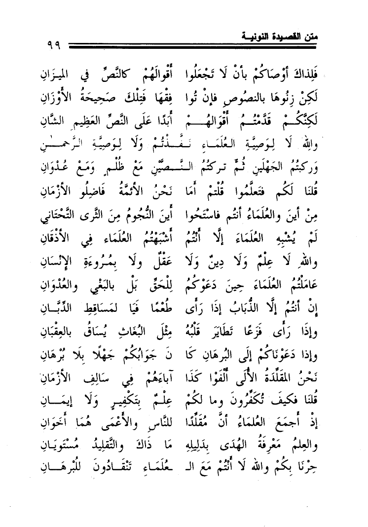 فلذاك أوصاكم بأن لا تجعلوا ... أقوالهم كالنص في الميزان