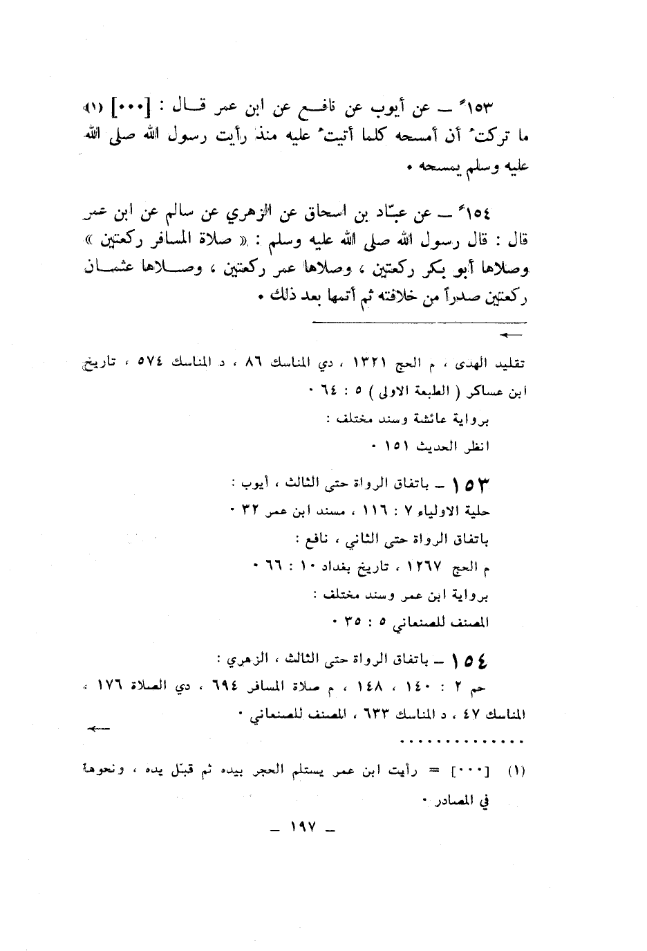 ١٥٣ - عَنْ أَيُّوبَ، عَنْ نَافِعٍ، عَنِ ابْنِ عُمَرَ، قَالَ: «مَا تَرَكْتُ أَنْ أَمْسَحَهُ، كُلَّمَا أَتَيْتُ عَلَيْهِ، مُنْذُ رَأَيْتُ رَسُولَ اللَّهِ صَلَّى اللهُ عَلَيْهِ وَسَلَّمَ يَمْسَحُهُ»