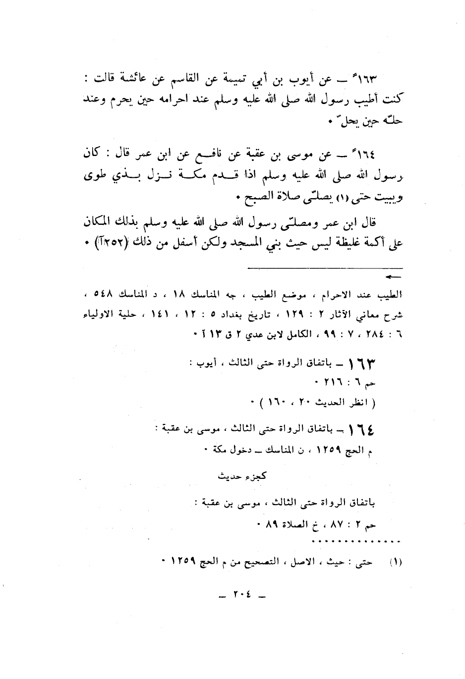 ١٦٣ - عَنْ أَيُّوبَ بْنِ أَبِي تَمِيمَةَ، عَنِ الْقَاسِمِ، عَنْ عَائِشَةَ، قَالَتْ: «كُنْتُ أُطَيِّبُ رَسُولَ اللَّهِ صَلَّى اللهُ عَلَيْهِ وَسَلَّمَ عِنْدَ إِحْرَامِهِ حِينَ يَحْرُمُ، وَعِنْدَ حِلِّهِ حِينَ يَحِلُّ»