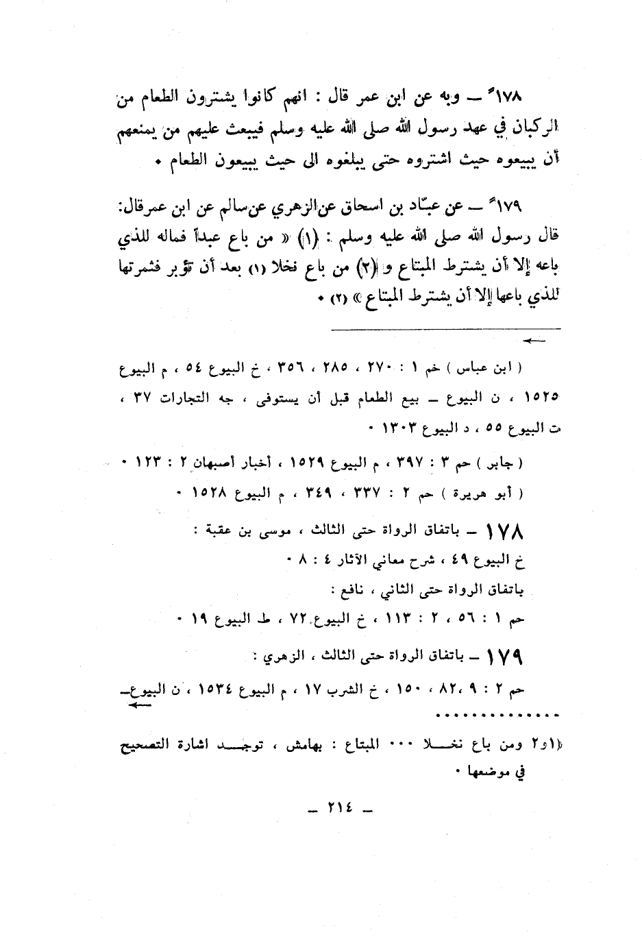 ١٧٨ - وَبِهِ عَنِ ابْنِ عُمَرَ، قَالَ: إِنَّهُمْ «كَانُوا يَشْتَرُونَ الطَّعَامَ مِنَ الرُّكْبَانِ فِي عَهْدِ رَسُولِ اللَّهِ صَلَّى اللهُ عَلَيْهِ وَسَلَّمَ، فَيَبْعَثُ عَلَيْهِمْ مَنْ يَمْنَعُهُمْ أَنْ يَبِيعُوهُ حَيْثُ اشْتَرُوهُ حَتَّى يُبَلِّغُوهُ إِلَى حَيْثُ يَبِيعُونَ الطَّعَامُ»