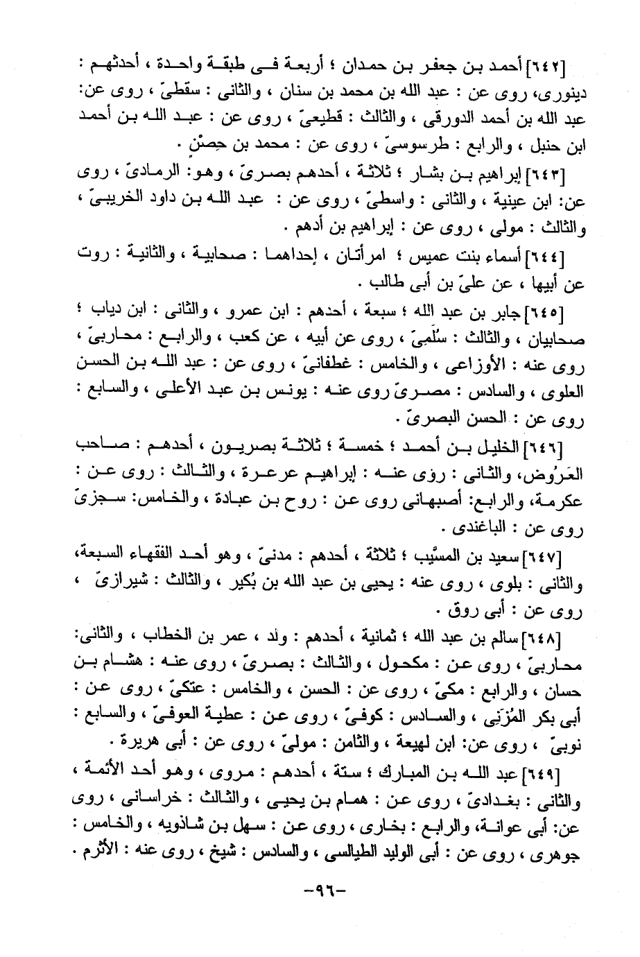[649] عبد الله بن المبارك؛ ستة، أحدهم: مروى، وهو أحد الأئمة، والثانى: بغدادىّ، روى عن: همام بن يحيى، والثالث: خراسانى، روى عن: أبى عوانة، والرابع: بخارى، روى عن: سهل بن شاذويه، والخامس: