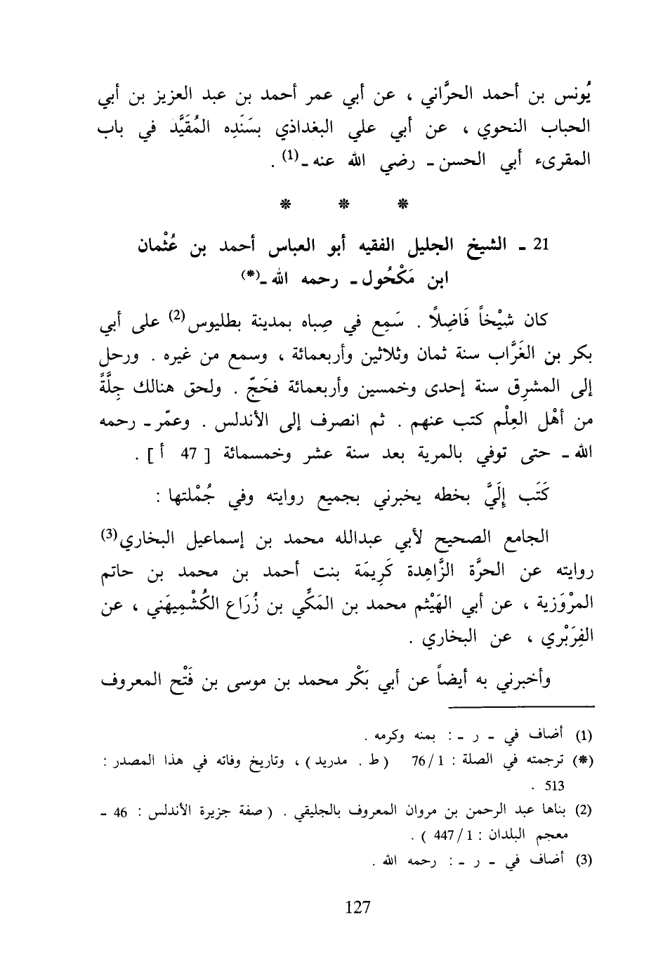 21 - الشَّيْخ الْجَلِيل الْفَقِيه أَبُو الْعَبَّاس أَحْمد بن عُثْمَان ابْن مَكْحُول رَحمَه الله