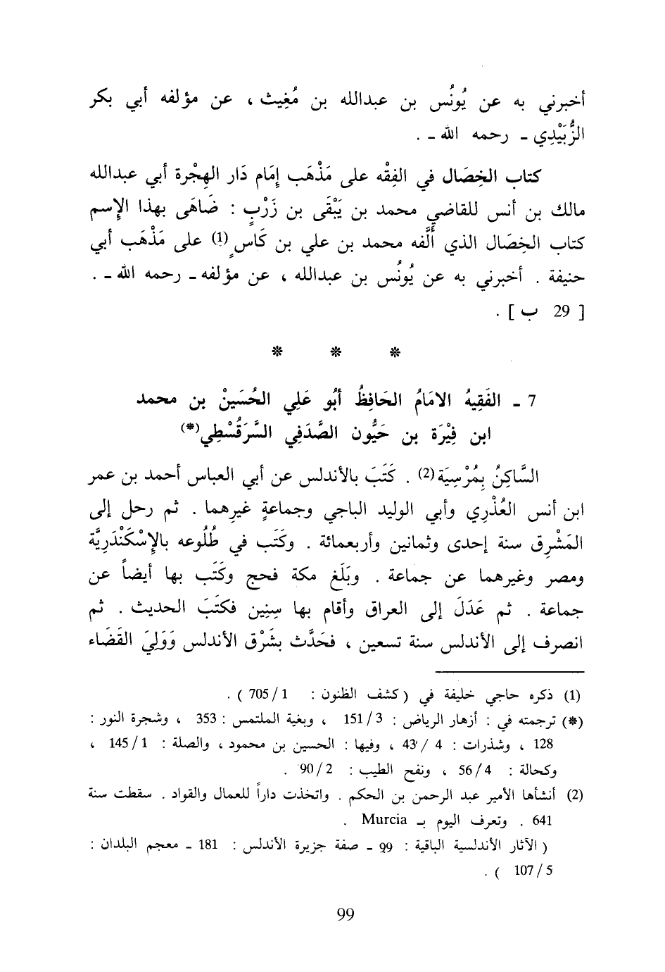 7 - الْفَقِيه الإِمَام الْحَافِظ أَبُو عَليّ الْحُسَيْن بن مُحَمَّد ابْن فيرة بن حيون الصَّدَفِي السَّرقسْطِي