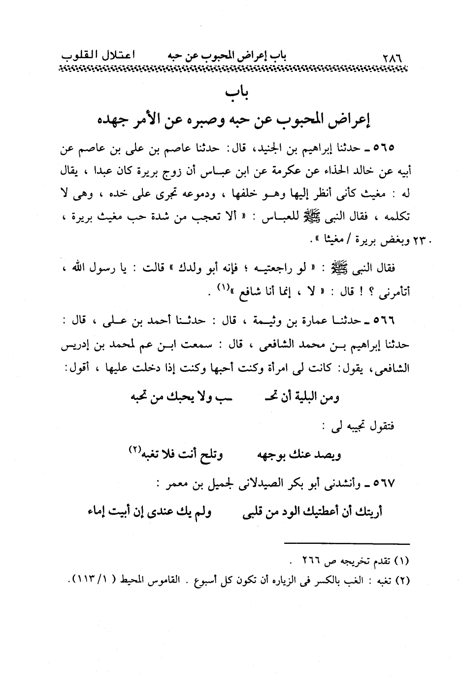 §بَابُ إِعْرَاضِ الْمَحْبُوبِ عَنْ حُبِّهِ وَصَبْرِهِ عَنِ الْأَمْرِ جَهْدَهُ