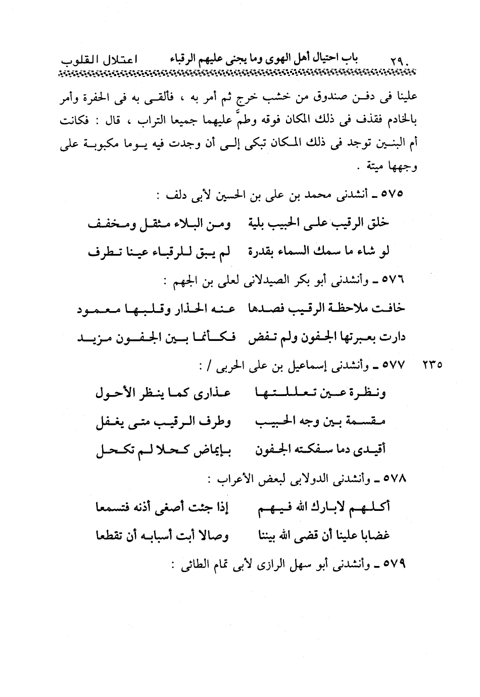 575 - أَنْشَدَنِي مُحَمَّدُ بْنُ عَلِيِّ بْنِ الْحُسَيْنِ لِأَبِي دُلَفَ: