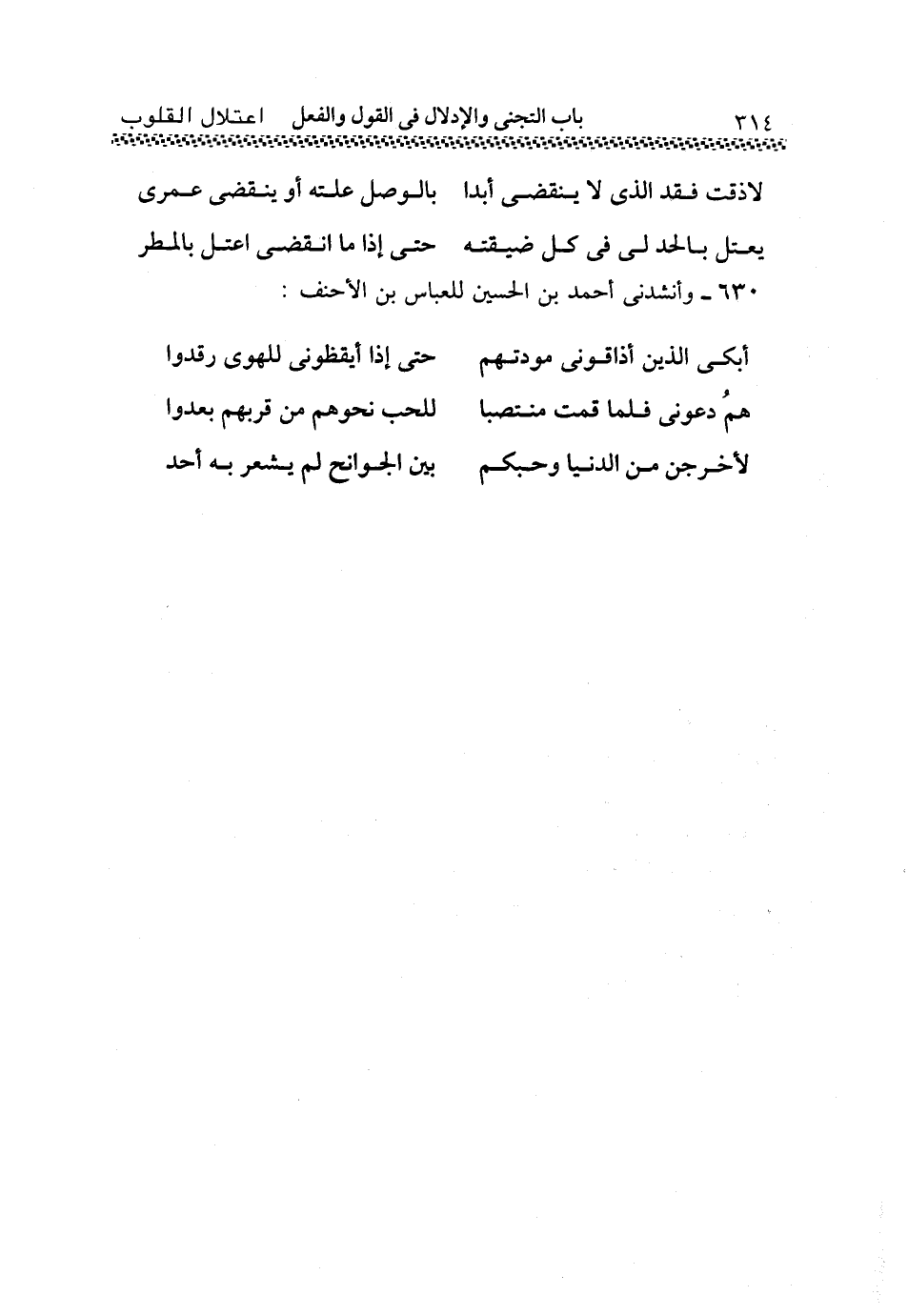 630 - وَأَنْشَدَنِي أَحْمَدُ بْنُ الْحُسَيْنِ لِلْعَبَّاسِ بْنِ الْأَحْنَفِ: