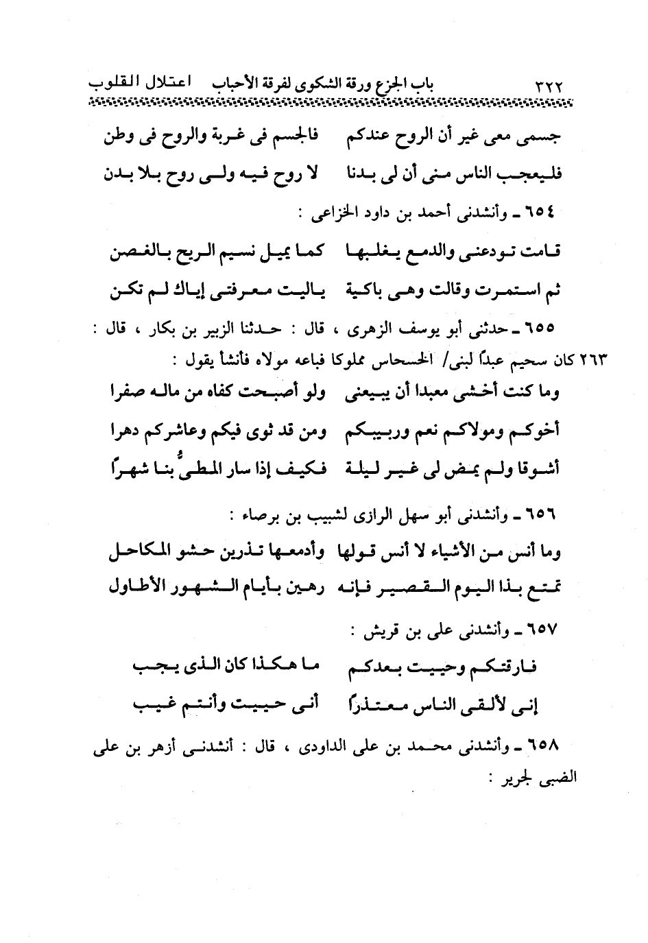 654 - وَأَنْشَدَنِي أَحْمَدُ بْنُ دَاوُدَ الْخُزَاعِيُّ: «