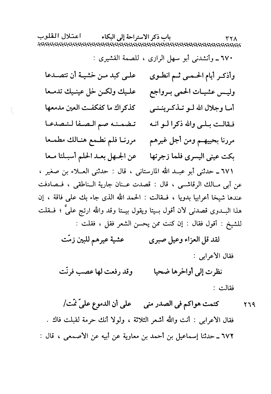670 - وَأَنْشَدَنِي أَبُو سَهْلٍ الرَّازِيُّ لِلصِّمَّةِ الْقُشَيْرِيِّ: