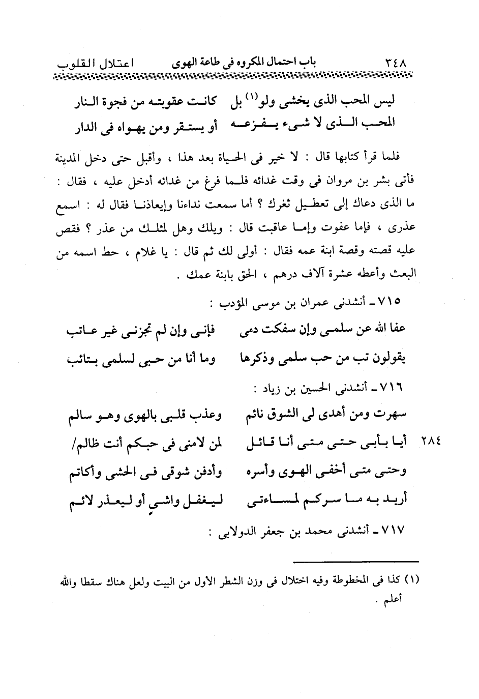 716 - أَنْشَدَنِي الْحُسَيْنُ بْنُ زِيَادٍ: