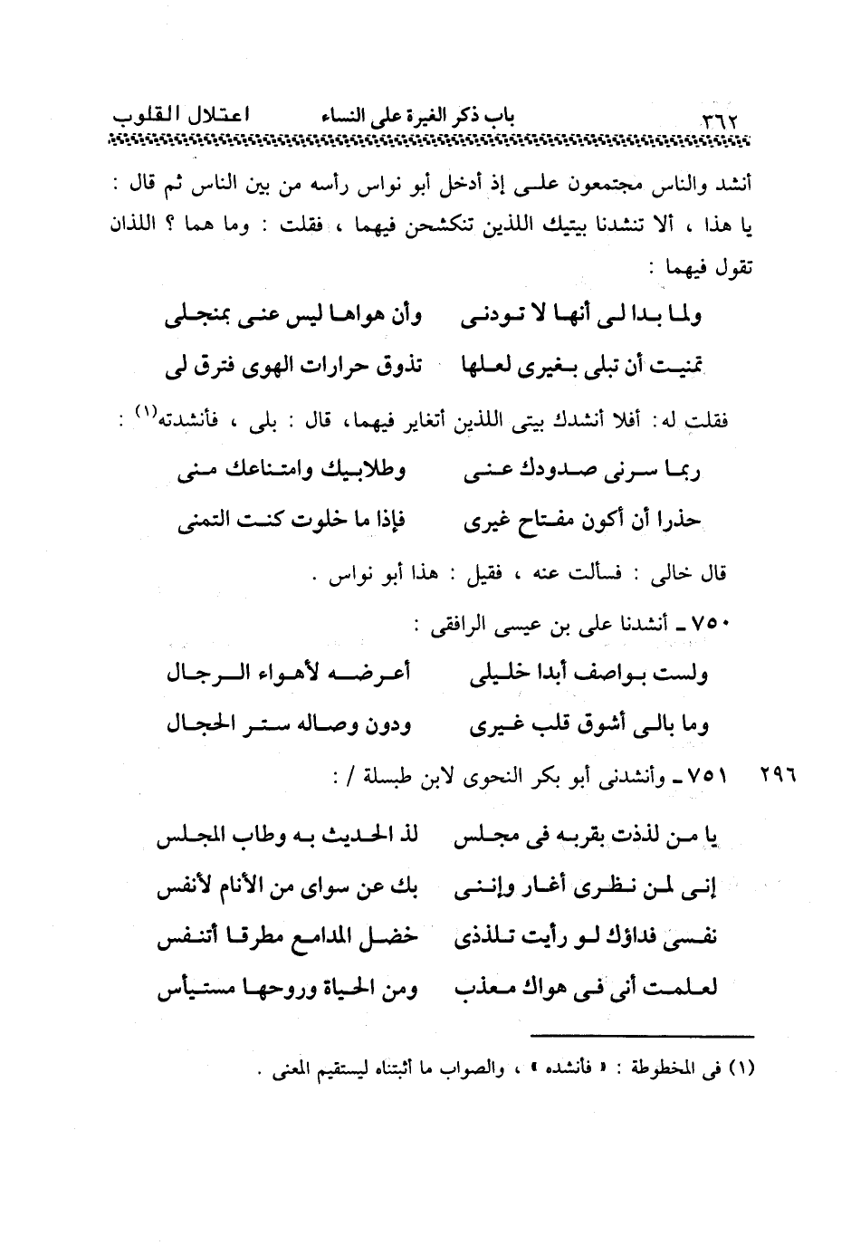 751 - وَأَنْشَدَنِي أَبُو بَكْرٍ النَّحْوِي لِابْنِ طَبْسَلَةَ:
