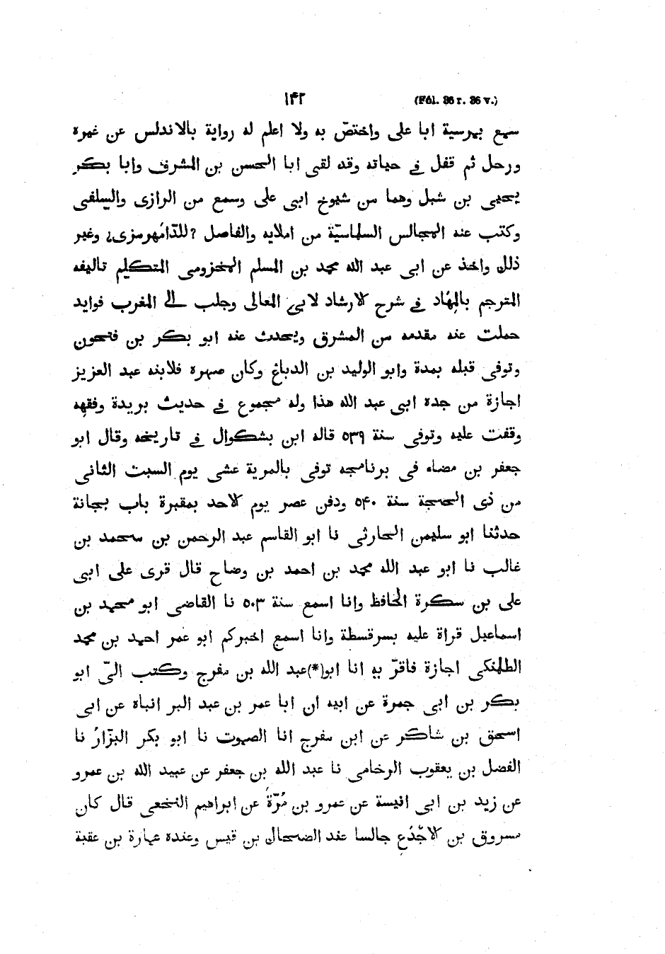 سَمِعَ بِمُرْسِيَّةَ أَبَا عَلِيٍّ وَاخْتَصَّ بِهِ وَلا أعلم لَهُ رِوَايَةً بِالأَنْدَلُسِ عَنْ غَيْرِهِ وَرَحَلَ ثُمَّ قَفَلَ فِي حَيَاتِهِ وَقَدْ لَقِيَ أَبَا الْحَسَنِ بْنَ الْمشرفِ وَأَبَا بَكْرٍ يَحْيَى بْنَ شِبْلٍ وَهُمَا مِنْ شُيُوخِ أَبِي عَلِيٍّ وَسَمِعَ مِنَ الرَّازِيِّ وَالسِّلَفِيِّ وَكَتَبَ عَنْهُ الْمَجَالِسَ السَّلَمَاسِيَّةَ مِنْ أملايه والفاصل للدامهرمزي وَغَيْرِ ذَلِكَ وَأَخَذَ عَنْ أَبِي عَبْدِ اللَّهِ مُحَمَّدِ بْنِ الْمُسْلِمِ الْمَخْزُومِيِّ الْمُتَكَلِّمِ تَأْلِيفَهُ الْمُتَرْجَمُ بالمهاد في شرح الاشاد لأبي المعالي وجلب إلى المغرب فوايد حُمِلَتْ عَنْهُ مَقْدِمَهُ مِنَ الْمَشْرِقِ وَيُحَدِّثُ عَنْهُ أَبُو بَكْرِ بْنُ فَتْحُونٍ وَتُوُفِيَّ قَبْلَهُ بِمُدَّةٍ وَأَبُو الْوَلِيدِ بْنُ الدَّبَّاغِ وَكَانَ صِهْرُهُ فَلابْنِهِ عَبْدِ الْعَزِيزِ إِجَازَةٌ مِنْ جَدِّهِ أَبِي عَبْدِ اللَّهِ هَذَا وَلَهُ مَجْمُوعٌ فِي حَدِيثِ بُرَيْدَةَ وَفِقْهِهِ وَقَفْتُ عَلَيْهِ وَتُوُفِّيَ سَنَةَ 539 قَالَهُ ابْنُ بَشْكُوَالَ فِي تَارِيخِهِ وَقَالَ أَبُو جَعْفَرِ بْنُ مَضَّاءٍ فِي بَرْنَامَجِهِ تُوُفِّيَ بِالْمَرِيَّةِ عَشِيَّ يَوْمِ السَّبْتِ الثَّانِي مِنْ ذِي الْحِجَّةِ سَنَة 540 ودُفنَ عَصْرَ يَوْمِ الأَحَدِ بِمَقْبَرَهِ بَابَ بِجَانَةَ حَدَّثَنَا أَبُو سُلَيْمَانَ الْحَارِثِيُّ نا أَبُو الْقَاسِمِ عَبْدُ الرَّحْمَنِ بْنُ مُحَمَّدِ بْنِ غَالِبٍ نا أَبُو عَبْدِ اللَّهِ مُحَمَّدُ بْنُ أَحْمَدَ بْنِ وَضَّاحٍ قال قرى عَلَى أَبِي عَلِيِّ بْنِ سُكَّرَةَ الْحَافِظِ وَأَنَا أَسْمَعُ سَنَةَ 503 نا الْقَاضِي أَبُو مُحَمَّدِ بْنُ إسماعيل قراة عَلَيْهِ بِسَرَقُسْطَةَ وَأَنَا أَسْمَعُ أَخْبَرَكُمْ أَبُو عُمَرَ أَحْمَدُ بْنُ مُحَمَّدٍ الطَّلَمَنْكِيُّ إِجَازَةً فَأَقَرَّ بِهِ أَبُو عَبْدِ اللَّهِ بْنُ مُفَرِّجٍ وَكَتَبَ إِلَيَّ أَبُو بَكْرِ بْنُ أَبِي جَمْرَةَ عَنْ أَبِيهِ أَنَّ أَبَا عُمَرَ بْنَ عَبْدِ الْبَرِّ أَنْبَأَهُ عن أبي اسحق بْنِ شَاكِرٍ عَنِ ابْنِ مُفَرِّجٍ أَنَا الصَّمُوتُ نا أَبُو بَكْرٍ الْبَزَّارُ نا الْفَضْلُ بْنُ يَعْقُوبَ الرُّخَامِيُّ نا عَبْدُ اللَّهِ بْنُ جَعْفَرٍ عَنْ عُبَيْدِ اللَّهِ بْنِ عَمْرٍو عَنْ زَيْدِ بْنِ أَبِي أُنَيْسَةَ عَنْ عَمْرِو بْنِ مُرَّةَ عَنْ إِبْرَاهِيمَ النَّخَعِيِّ قَالَ كَانَ مَسْرُوقُ بْنُ الأَجْدَعِ جَالِسًا عِنْدَ الضَّحَّاكِ بْنِ قَيْسٍ وَعِنْدَهُ عمارة بن عقبة