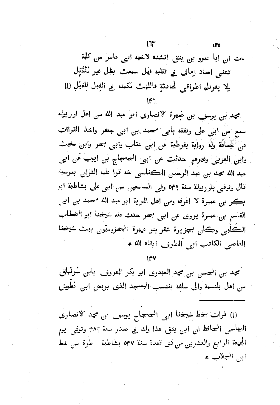مُحَمَّدُ بْنُ يُوسُف بْنِ عُمَيْرَةَ الْأَنْصَارِيُّ أَبُو عَبْدِ اللَّهِ من أهل أوريولة سَمِعَ مِنْ أَبِي عَلِيٍّ وَتَفَقَّهَ بِأَبِي مُحَمَّدِ بن أبي جعفر وأخذ القراات عَنْ جَمَاعَةٍ وَلَهُ رِوَايَةٌ بِقُرْطُبَةَ عَنِ ابْنِ عَتَّابٍ وَأَبِي بَحْرٍ وَابْنِ مُغِيثٍ وَابْنِ الْعَرَبِيِّ وَغَيْرِهِمْ حُدِّثْتُ عَنْ أَبِي الْحَجَّاجِ بْنِ أَيُّوبَ عَنْ أَبِي عَبْدِ اللَّهِ مُحَمَّدِ بْنِ عَبْدِ الرَّحْمَنِ الْمِكْنَاسِيِّ عَنْهُ قَرَأَ عَلَيْهِ الْقُرْآن بِمُرْسِيَّةَ قَالَ وَتُوُفِّيَ بِأوريولَةَ سَنَةَ 549 وَفِي السَّامِعِينَ مِنْ أَبِي عَلِيٍّ بِشَاطِبَةَ أَبُو بَكْرِ بْنُ عُمَيْرَةَ لا أَعْرِفُهُ وَمِنْ أَهْلِ الْمَرِيَّةِ أَبُو عَبْدِ اللَّهِ مُحَمَّدُ بْنُ أَبِي الْقَاسِمِ بْنِ عُمَيْرَةَ يروى عن أبي بحر حدث عنه سشيخنا أَبُو الْخَطَّابِ الْكَلْبِيُّ وَكَانَ بِجَزِيرَةِ شُقْرٍ بَنُو عُمَيْرَةَ الْمَخْزُومِيُّونَ بَيْتُ شَيْخِنَا الْقَاضِي الْكَاتِبِ أَبِي الْمُطَرِّفِ أَبْقَاهُ اللَّهُ.