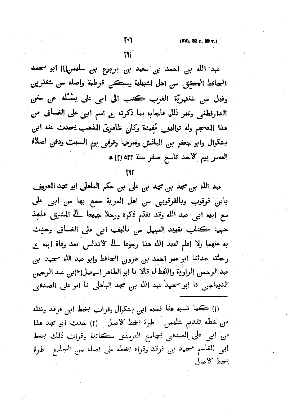 عَبْدُ اللَّهِ بْنُ مُحَمَّدِ بْنُ مُحَمَّدِ بْنِ عَلِيِّ بْنِ حَكَمٍ الْبَاهِلِيُّ أَبُو مُحَمَّدٍ الْمَعْرُوفُ بِابْنِ قَرْقُوبٍ وَبِالْقَرْقُوبِيِّ مِنْ أَهْلِ الْمَرِيَّةِ سَمِعَ بِهَا مِنْ أَبِي عَلِيٍّ مَعَ أَبِيهِ أَبِي عَبْدِ اللَّهِ وَقَدْ تَقَدَّمَ ذِكْرُهُ وَرَحَلا جَمِيعًا إِلَى الْمَشْرِقِ فَأَخَذَ عَنْهُمَا كِتَابَ تَقْيِيدِ الْمُهْمَلِ مِنْ تَأْلِيفِ أَبِي عَلِيٍّ الْغَسَّانِيِّ وَحَدَّثَ بِهِ عَنْهُمَا وَلا أَعْلَمُ لِعَبْدِ اللَّهِ هَذَا رُجُوعًا إِلَى الأَنْدَلُسِ بَعْدَ وَفَاةِ أبيه في رحلته حدثنا أبو عمر أحد بن هرون الْحَافِظُ وَأَبُو عَبْدِ اللَّهِ مُحَمَّدُ بْنُ عَبْدِ الرحمن الرواية واللفظ له قالا نا أبو الطاهر إسمعيل بْنُ عَبْدِ الرَّحْمَنِ الدِّيبَاجِيُّ نا أَبُو مُحَمَّدٍ عَبْدُ اللَّهِ بْنُ مُحَمَّدٍ الْبَاهِلِيُّ نا أَبُو علي الصدفي الدِّيبَاجِيُّ نا أَبُو مُحَمَّدٍ عَبْدُ اللَّهِ بْنُ محمد الباهلي نا أبو علي الصدفي قراة عليه