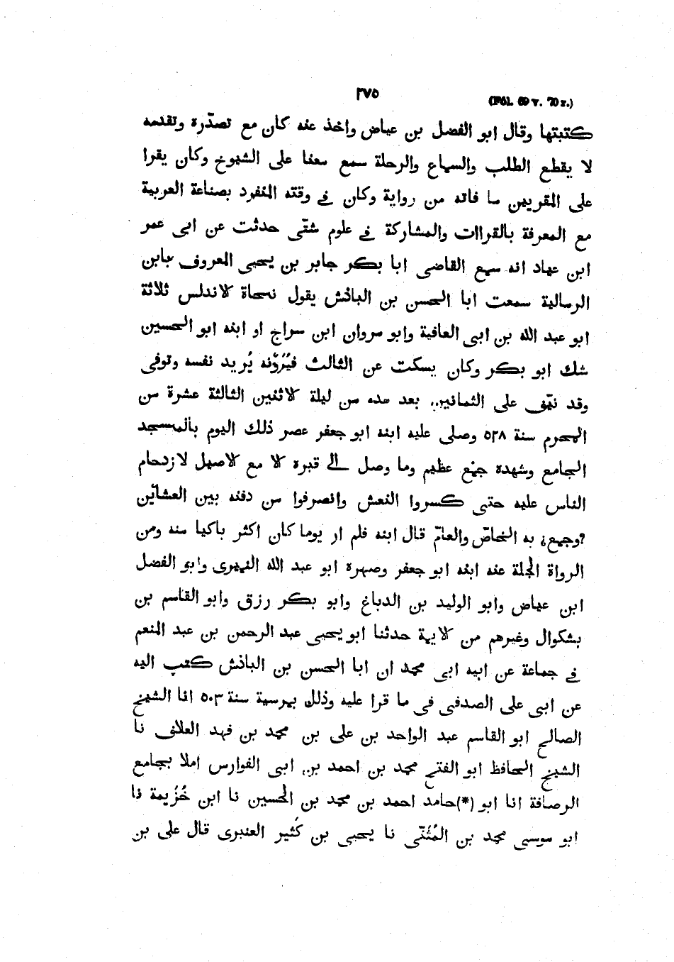 كَتَبْتُهَا وَقَالَ أَبُو الْفَضْلِ بْنُ عِيَاضٍ وَأَخَذَ عنه كان مَعَ تَصَدُّرِهِ وَتَقَدُّمِهِ لَا يَقْطَعُ الطَّلَبُ وَالسَّمَاعُ وَالرِّحْلَةُ سَمِعَ مَعَنَا عَلَى الشُّيُوخِ وَكَانَ يَقْرَأُ على المقربين مَا فَاتَهُ مِنْ رِوَايَةٍ وَكَانَ فِي وَقْتِهِ المنفرد بصناعة العربية مع المعرفة بالقراات وَالْمُشَارَكَةِ فِي عُلُومٍ شَتَّى حُدِّثْتُ عَنْ أَبِي عُمَرَ بْنِ عَيَّادٍ أَنَّهُ سَمِعَ الْقَاضِي أَبَا بَكْرٍ جَابِرَ بْنَ يَحْيَى الْمَعْرُوفُ بِابْنِ الرَّمَّالِيَّةِ سمعت أبا الحسين بْنَ الْبَاذِشِ يَقُولُ نُحَاةُ الْأَنْدَلُسِ ثَلَاثَةٌ أَبُو عَبْدِ اللَّهِ بْنِ أَبِي الْعَافِيَةِ وَأَبُو مَرْوَانَ ابن سراج أو ابنه أبو الحسن شك أبو بكر وكان يسكت عن الثالث فيُرَوْنَهُ يُرِيدُ نَفْسَهَ وَتُوُفِّيَ وَقَدْ نَيَّفَ عَلَى الثمانين بعد مدة من لَيْلَةِ الِاثْنَيْنِ الثَّالِثَةَ عَشْرَةَ مِنَ الْمُحَرَّمِ سَنَةَ 528 وَصَلَّى عَلَيْهِ ابْنُهُ أَبُو جَعْفَرٍ عَصْرَ ذَلِكَ الْيَوْمِ بِالْمَسْجِدِ الْجَامِعِ وَشَهِدَهُ جَمْعٌ عَظِيمٌ وَمَا وَصَلَ إِلَى قَبْرِهِ إِلَّا مَعَ الْأَصِيلِ لِازْدِحَامِ النَّاسِ عَلَيْهِ حَتَّى كَسَرُوا النَّعْشَ وَانْصَرَفُوا مِنْ دَفْنِهِ بَيْنَ الْعِشَائَيْنِ وَجُمِعَ بِهِ الْخَاصُّ وَالْعَامُّ قَالَ ابْنُهُ فَلَمْ أَرَ يَوْمًا كَانَ أَكْثَرَ بَاكِيًا مِنْهُ وَمِنَ الرُّوَاةِ الْجُلَّةِ عَنْهُ ابْنُهُ أَبُو جَعْفَرٍ وَصِهْرُهُ أَبُو عَبْدِ اللَّهِ النُّمَيْرِيُّ وأبو الفضل ابن عِيَاضٍ وَأَبُو الْوَلِيدِ بْنُ الدَّبَّاغِ وَأَبُو بَكْرٍ رِزْقٌ وَأَبُو الْقَاسِمِ بْنَ بَشْكُوَالَ وَغَيْرُهُم مِنَ الأيمة حَدَّثَنَا أَبُو يَحْيَى عَبْدُ الرَّحْمَنِ بْنُ عَبْدِ الْمُنْعِمِ فِي جَمَاعَةٍ عَنْ أَبِيهِ أَبِي مُحَمَّدٍ أَنَّ أَبَا الْحَسَنِ بْنَ الْبَاذِشِ كَتَبَ إِلَيْهِ عَنْ أَبِي عَلِيٍّ الصَّدَفِيِّ فِي مَا قَرَأَ عَلَيْهِ وَذَلِكَ بِمُرْسِيَّةَ سَنَةَ 503 أَنَا الشَّيْخُ الصَّالِحُ أَبُو الْقَاسِمِ عَبْدُ الْوَاحِدِ بْنُ عَلِيِّ بْنِ مُحَمَّدِ بْنِ فَهْدٍ الْعَلَّافِ نا الشَّيْخُ الْحَافِظُ أَبُو الْفَتْحِ مُحَمَّدُ بْنُ أَحْمَدَ بْنِ أَبِي الفوارس أملأ بِجَامِعِ الرُّصَافَةِ أنا أَبُو حَامِدٍ أَحْمَدُ بْنُ مُحَمَّدِ بْنِ الْحُسَيْنِ نا ابْنُ خُزَيْمَةَ نا أَبُو مُوسَى مُحَمَّدُ بْنُ الْمُثَنَّى نا يَحْيَى بْنُ كَثِيرٍ الْعَنْبَرِيُّ قَالَ عَلِيُّ بْنُ