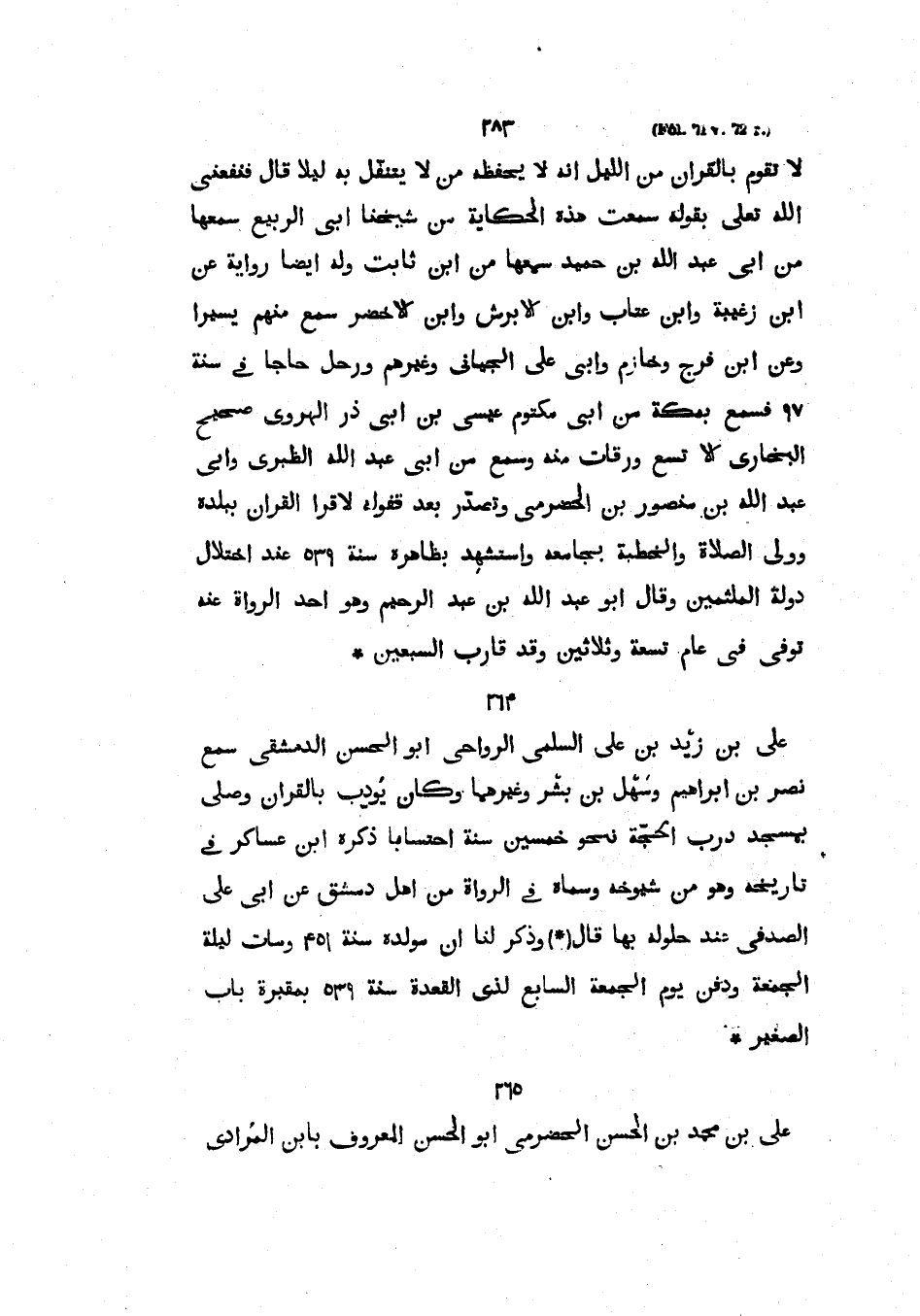عَلِيُّ بْنُ زَيْدِ بْنِ عَلِيٍّ السُّلَمِيُّ الرَّوَاحِيُّ أَبُو الْحَسَنِ الدِّمَشْقِيُّ سَمِعَ نَصْرَ بْنَ إِبْرَاهِيمَ وَسَهْلَ بْنَ بِشْرٍ وَغَيْرَهُمَا وَكَانَ يُؤَدِّبُ بِالْقُرْآنِ وَصَلَّى بِمَسْجِدِ دَرْبِ الْحجةِ نَحْوَ خَمْسِينَ سَنَةً احْتِسَابًا ذَكَرَهُ ابْنُ عَسَاكِرَ فِي تَارِيخِهِ وَهُوَ مِنْ شُيُوخِهِ وَسَمَّاهُ فِي الرُّواةِ مِنْ أَهْلِ دِمَشْقَ عَنْ أَبِي عَلِيٍّ الصَّدَفِيِّ عِنْدَ حُلُولِهِ بِهَا قَالَ وَذَكَرَ لَنَا أَنَّ مَوْلِدَهُ سَنَةَ 451 وَمَاتَ لَيْلَةِ الْجُمُعَةِ وَدُفِنَ يَوْمَ الْجُمُعَةِ السَّابِعُ لِذِي الْقِعْدَةِ سَنَةَ 539 بِمَقْبَرَةِ بَابِ الصَّغِيرِ.