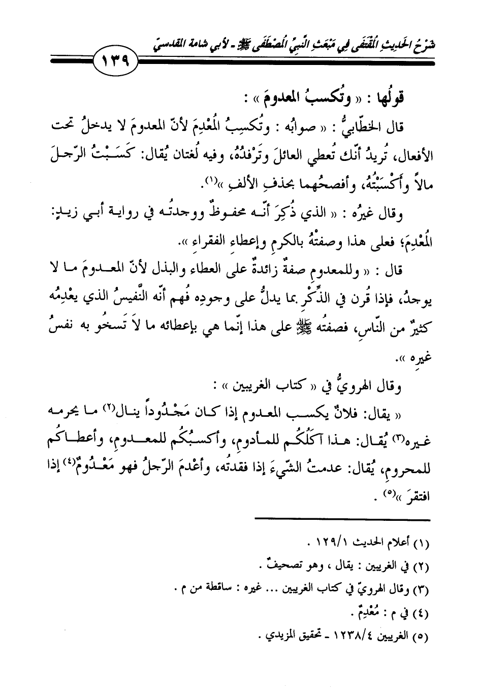 وَقَالَ غَيره: " الَّذِي ذكر أَنه مَحْفُوظ وَوَجَدته فِي رِوَايَة أبي زيد: المعدم، فعلى هَذَا وَصفته بِالْكَرمِ وَإِعْطَاء الْفُقَرَاء ".