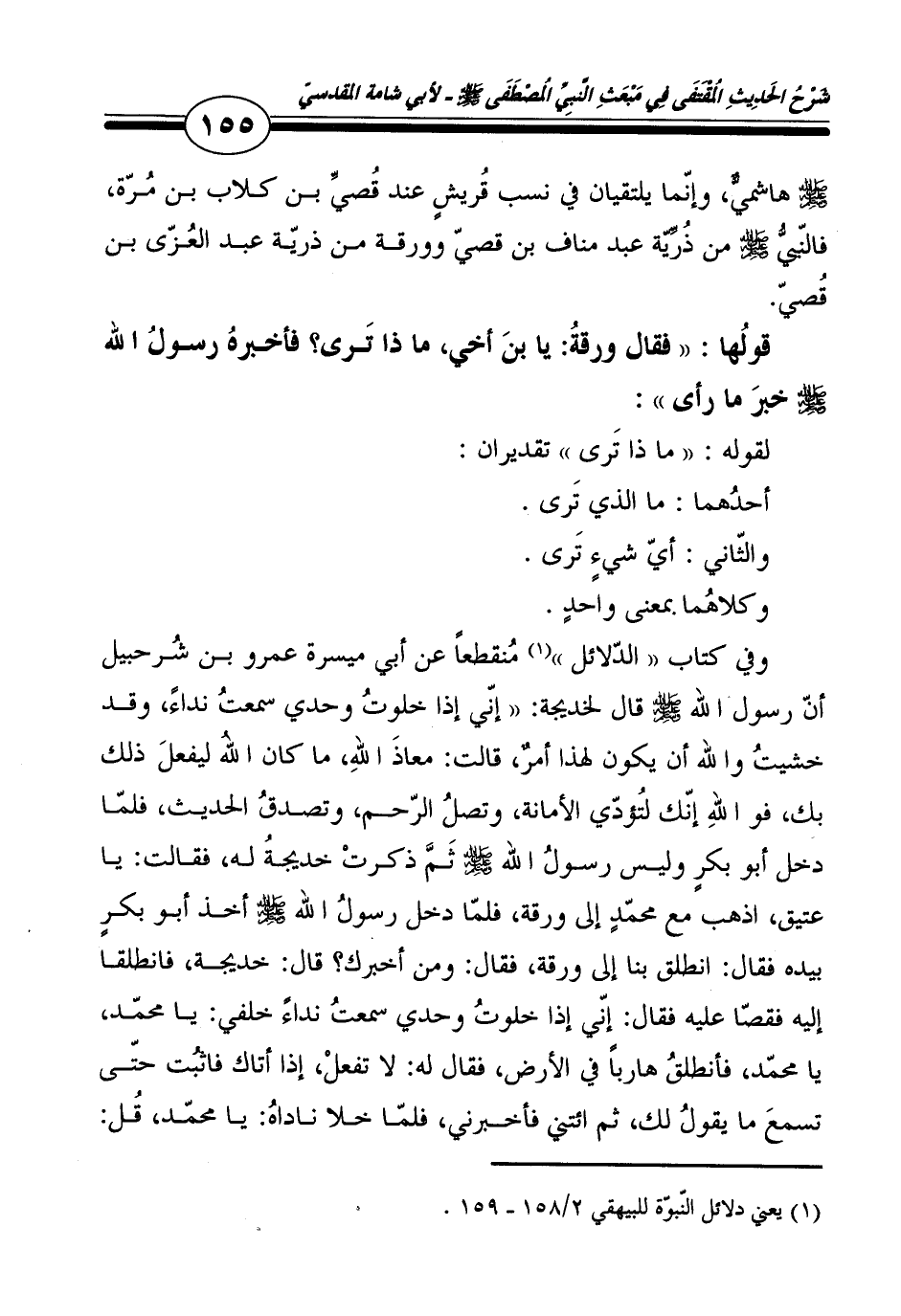 - صلى الله عليه وسلم - هاشمي، وَإِنَّمَا يَلْتَقِيَانِ فِي نسب قُرَيْش عِنْد قصي بن كلاب بن مرّة فالنبي - صلى الله عليه وسلم - من ذُرِّيَّة عبد منَاف بن قصي وورقة من ذُرِّيَّة عبد الْعُزَّى بن قصي.