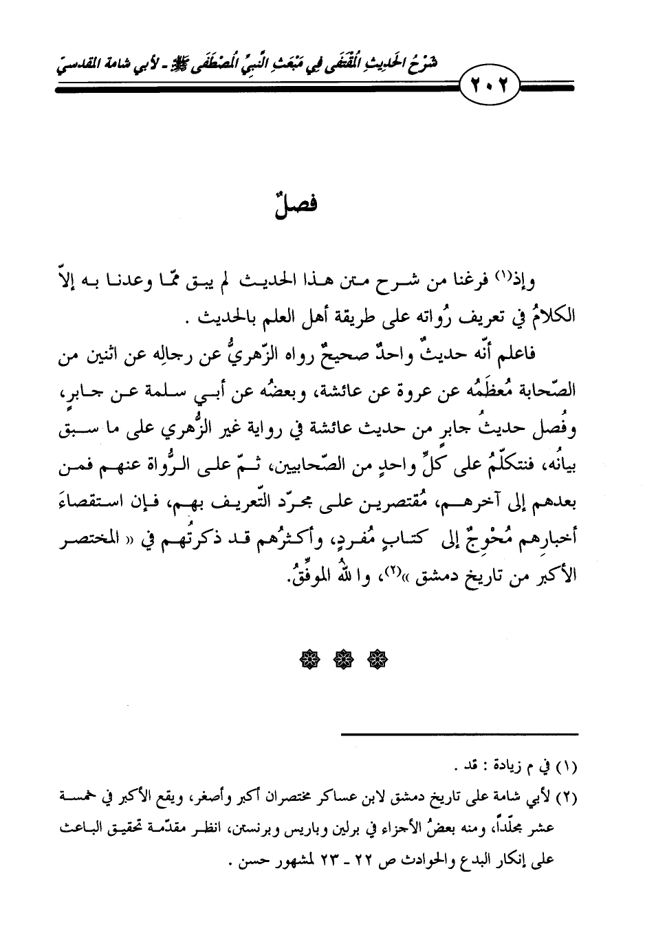فَاعْلَم أَنه حَدِيث وَاحِد صَحِيح رَوَاهُ الزُّهْرِيّ عَن رِجَاله عَن اثْنَيْنِ من الصَّحَابَة معظمة عَن عُرْوَة عَن عَائِشَة، وَبَعضه عَن أبي سَلمَة عَن جَابر، وَفصل حَدِيث جَابر من حَدِيث عَائِشَة فِي رِوَايَة غير الزُّهْرِيّ على مَا سبق بَيَانه، فنتكلم على كل وَاحِد من الصحابيين، ثمَّ على الروَاة عَنْهُم فَمن بعدهمْ إِلَى آخِرهم، مقتصرين على مُجَرّد التَّعْرِيف بهم، فَإِن استقصاء أخبارهم محوج إِلَى كتاب مُفْرد، وَأَكْثَرهم قد ذكرتهم فِي " الْمُخْتَصر الْأَكْبَر من تَارِيخ دمشق " وَالله الْمُوفق.