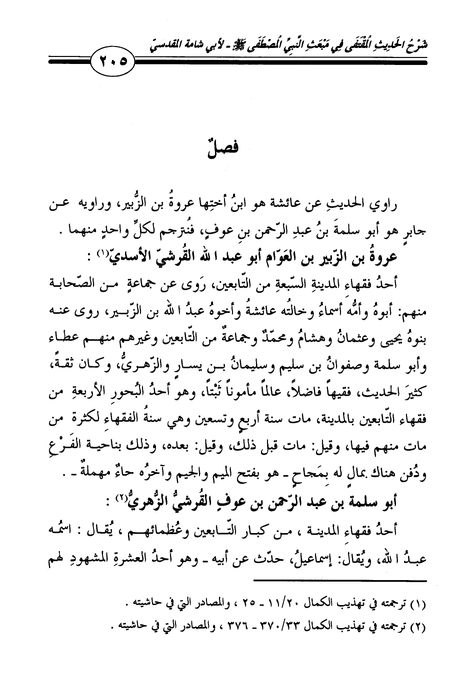 رَاوِي الحَدِيث عَن عَائِشَة هُوَ ابْن أُخْتهَا عُرْوَة بن الزبير، وَرَاوِيه عَن جَابر هُوَ أَبُو سَلمَة بن عبد الرَّحْمَن بن عَوْف، فنترجم لكل وَاحِد مِنْهُمَا.