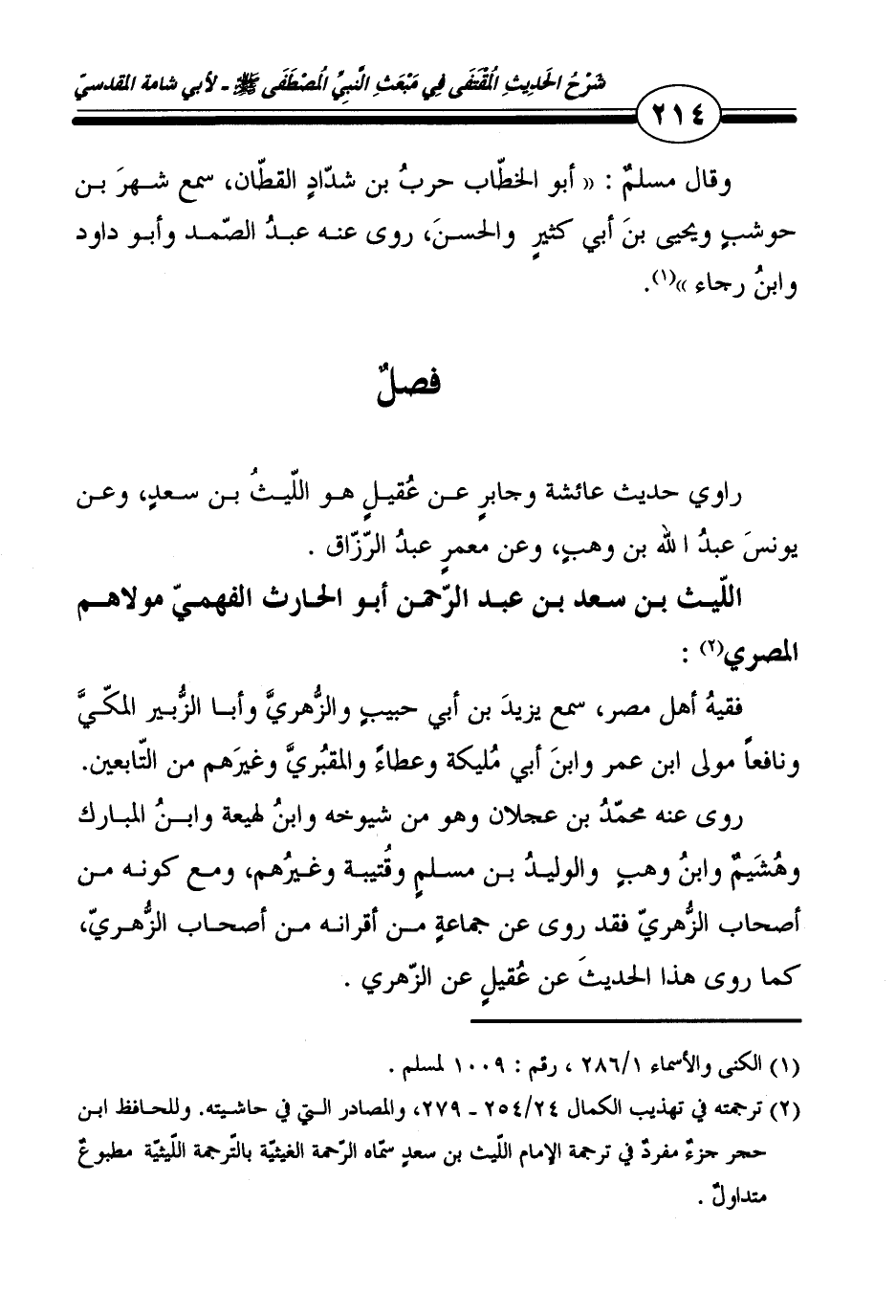 اللَّيْث بن سعد بن عبد الرَّحْمَن أَبُو الْحَارِث الفهمي مَوْلَاهُم الْمصْرِيّ: