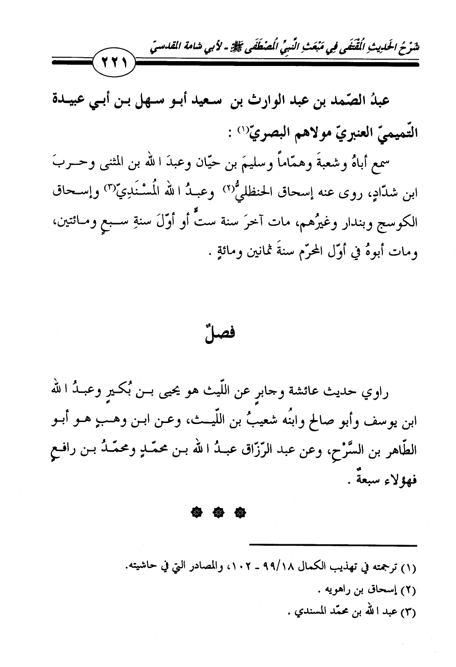 عبد الصَّمد بن عبد الْوَارِث بن سعيد أَبُو سهل بن أبي عُبَيْدَة التَّمِيمِي الْعَنْبَري مَوْلَاهُم الْبَصْرِيّ: