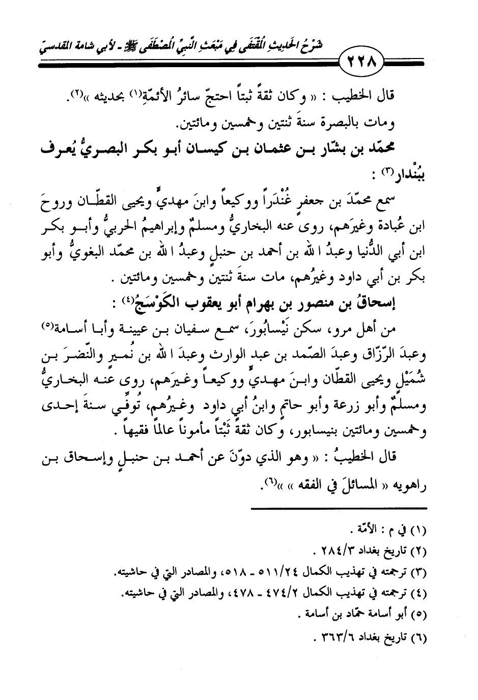 مُحَمَّد بن بشار بن عُثْمَان بن كيسَان أَبُو بكر الْبَصْرِيّ يعرف ببندار: