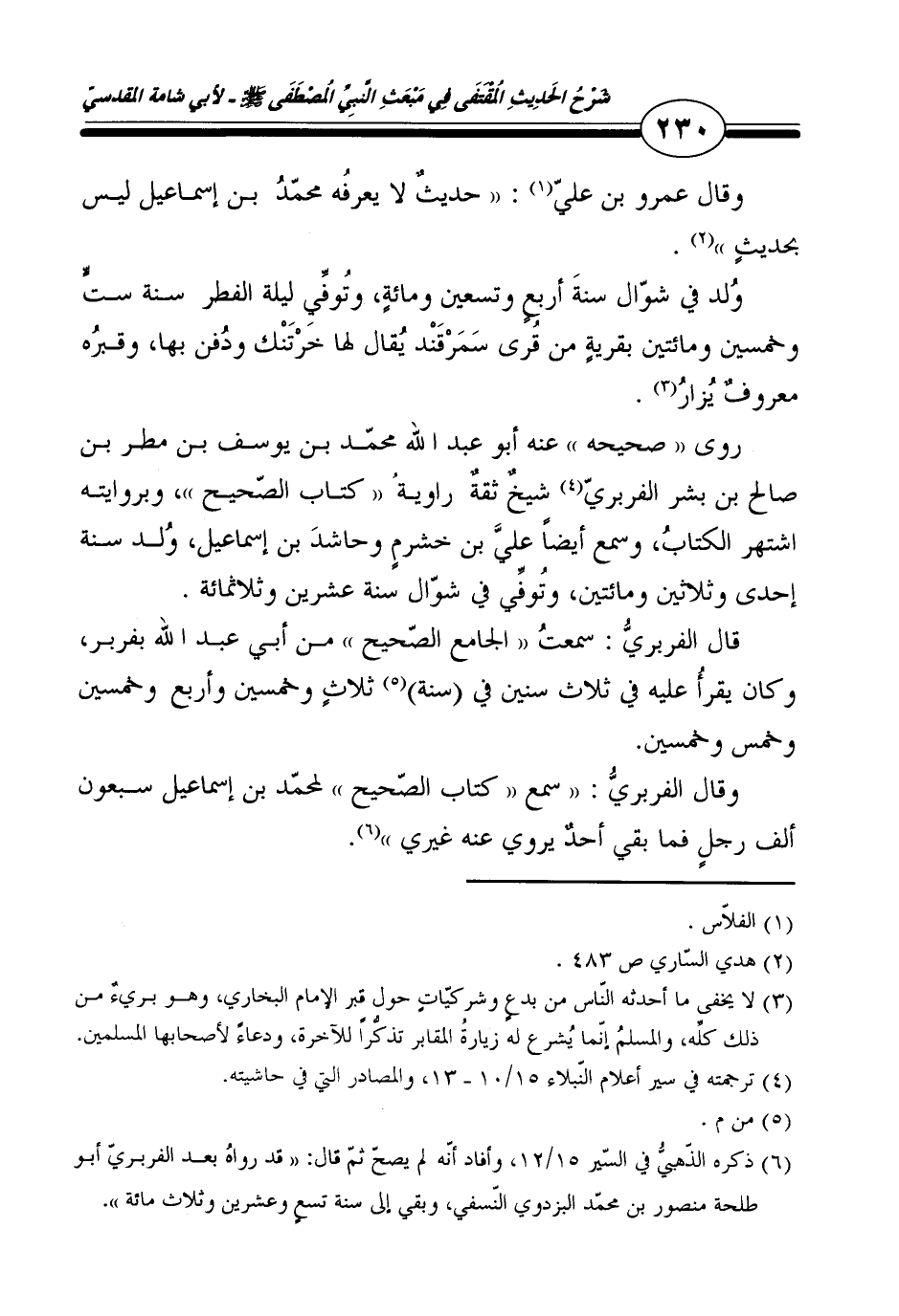 وَقَالَ الْفربرِي: " سمع " كتاب الصَّحِيح " لمُحَمد بن إِسْمَاعِيل سَبْعُونَ ألف رجل فَمَا بَقِي أحد يروي عَنهُ غَيْرِي ".