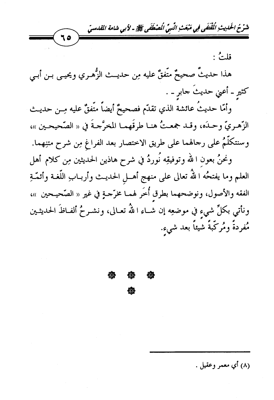 وَنحن بعون الله وتوفيقه نورد فِي شرح هاذين الْحَدِيثين من كَلَام أهل الْعلم وَمَا يَفْتَحهُ الله تَعَالَى على مَنْهَج أهل الحَدِيث وأرباب اللُّغَة وأئمة الْفِقْه وَالْأُصُول، ونوضحهما بطرق أخر لَهما مخرجة فِي غير " الصَّحِيحَيْنِ "، ونأتي بِكُل شَيْء فِي مَوْضِعه إِن شَاءَ الله تَعَالَى، ونشرح أَلْفَاظ الْحَدِيثين مُفْردَة ومركبة شَيْئا بعد شئ.