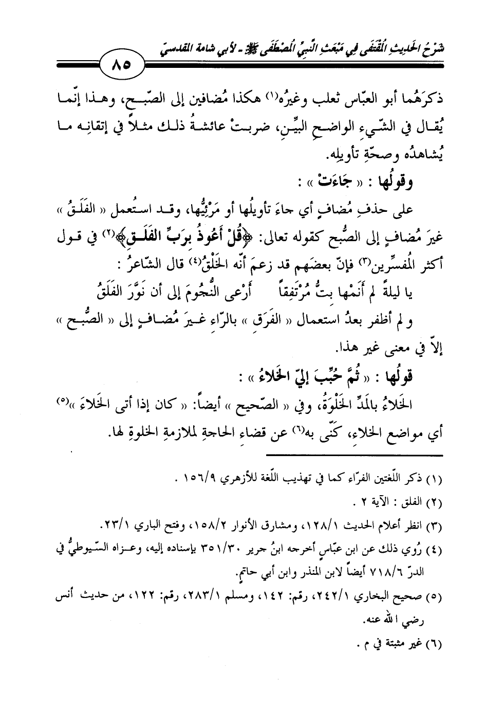 ذكرهمَا أَبُو الْعَبَّاس ثَعْلَب وَغَيره هَكَذَا مضافين إِلَى الصُّبْح، وَهَذَا إِنَّمَا يُقَال فِي الشَّيْء الْوَاضِح الْبَين، ضربت عَائِشَة ذَلِك مثلا فِي إتقانه مَا يُشَاهِدهُ وَصِحَّة تَأْوِيله.