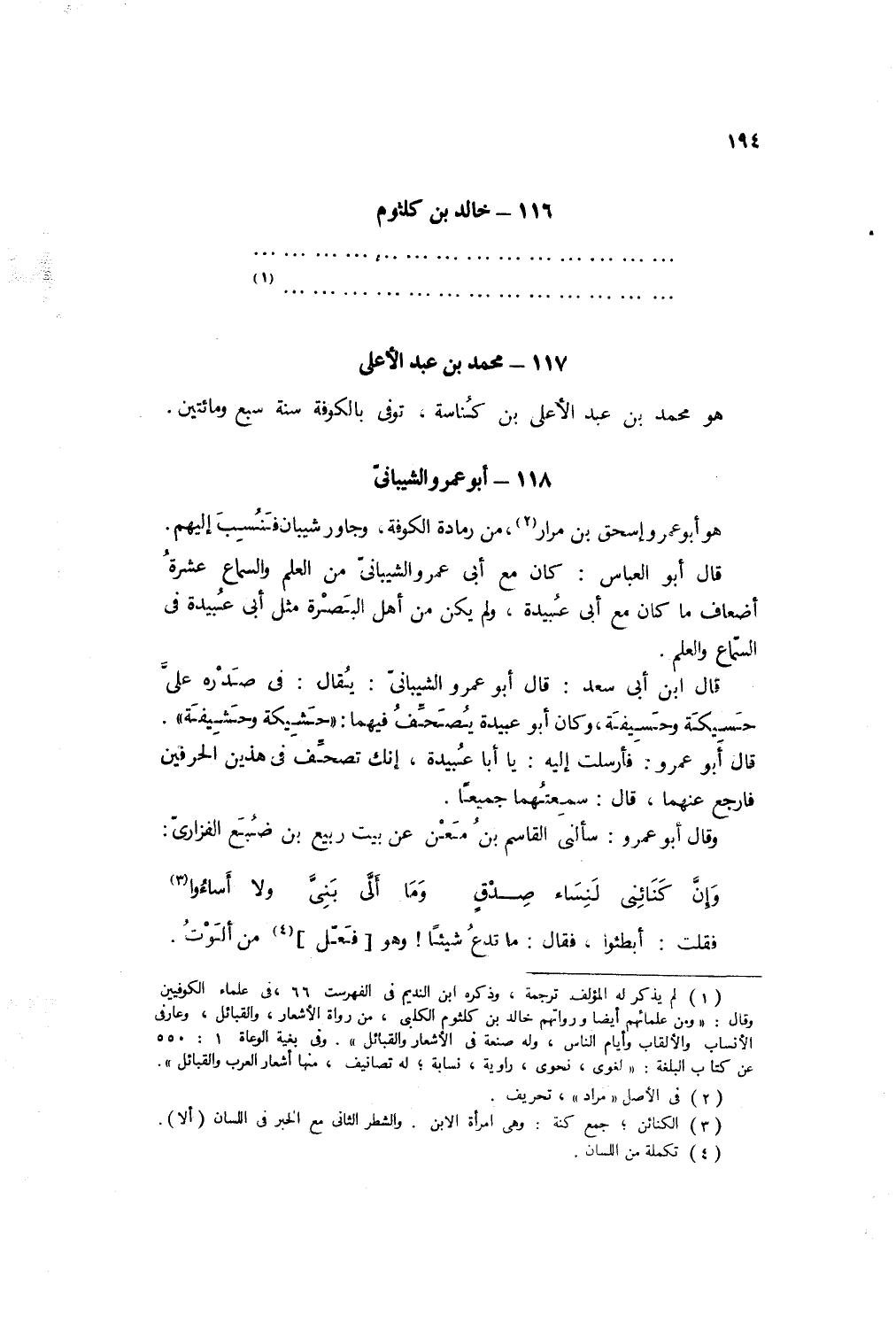 وقال أبو عمرو: سألني القاسم بن مَعْن عن بيت ربيع بن ضُبَعٍ الفزاريِّ: