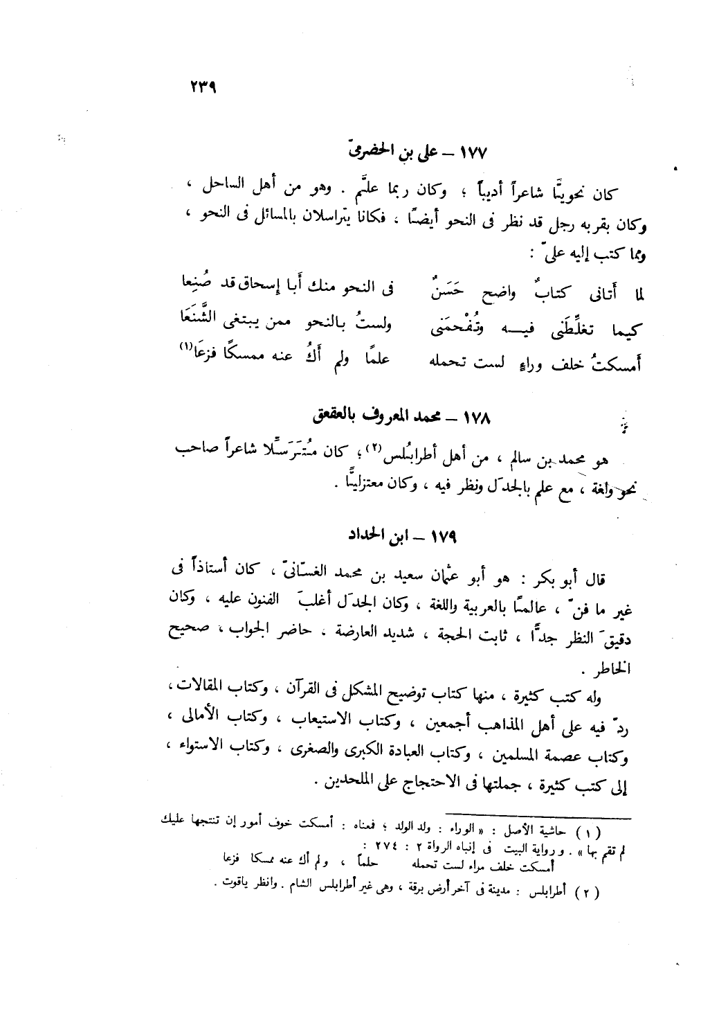 هو محمد بن سالم، من أهل أطرابُلس؛ كان مُتَرَسِّلًا شاعرًا صاحب نحو ولغة، مع علم بالجدل ونظرٍ فيه، وكان معتزليًّا.