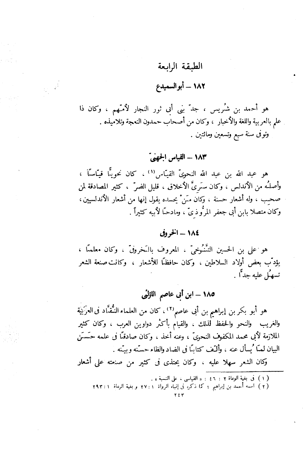 هو عبد الله بن عبد الله النَّحويُّ القيَّاسُ، كان نحويًّا قيَّاسًا، وأصلُه من الأندلس، وكان سريَّ الأخلاق، قليل الضرّ، كثير المصادقة لمن صحب، وله أشعار حسنة، وكان مَن يحسده يقول: إنها من أشعار الأندلسيين. وكان مُتَّصِلًا بابن أبي جعفر المرُّوذِيّ، ومادحًا لأبيه كثيرًا.
