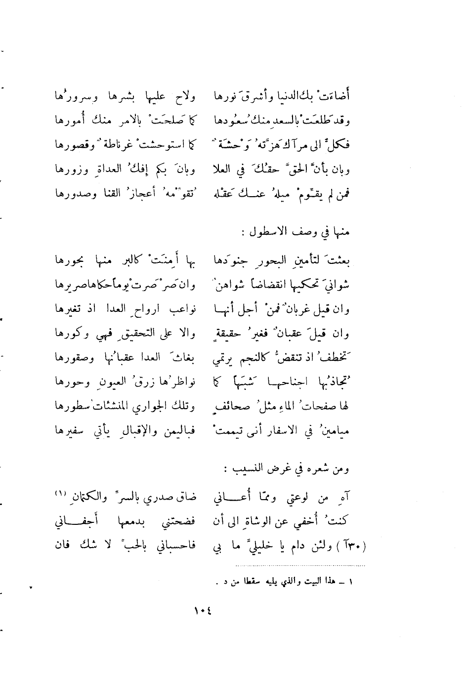 (1) هذا البيت والذي يليه سقطا من د.