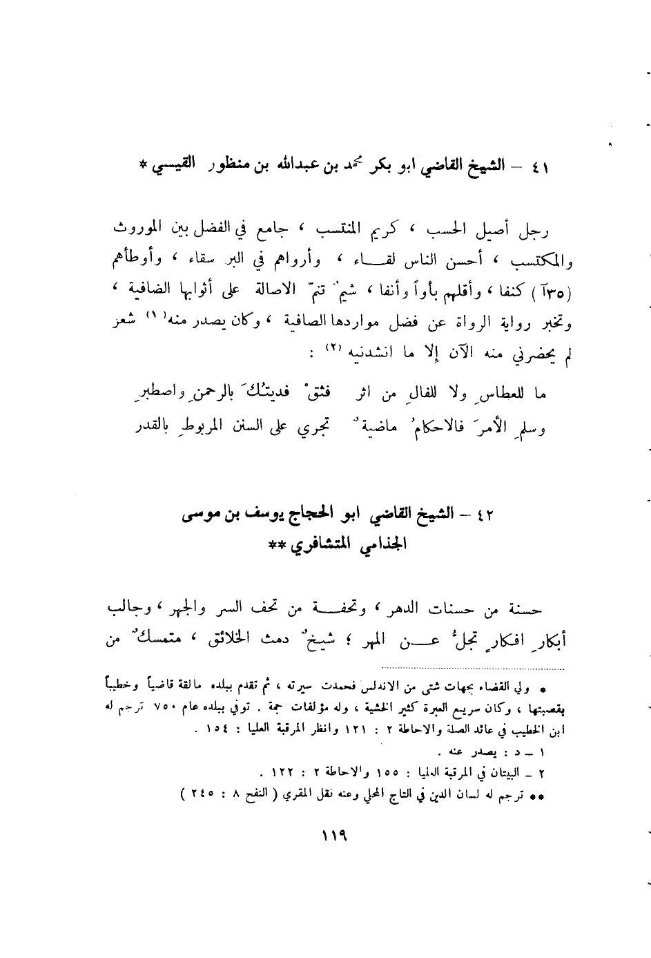 وسلم الأمر فالأحكام ماضية ... تجري على السنن المربوط بالقدر 42 - الشيخ القاضي أبو الحجاج يوسف بن موسى