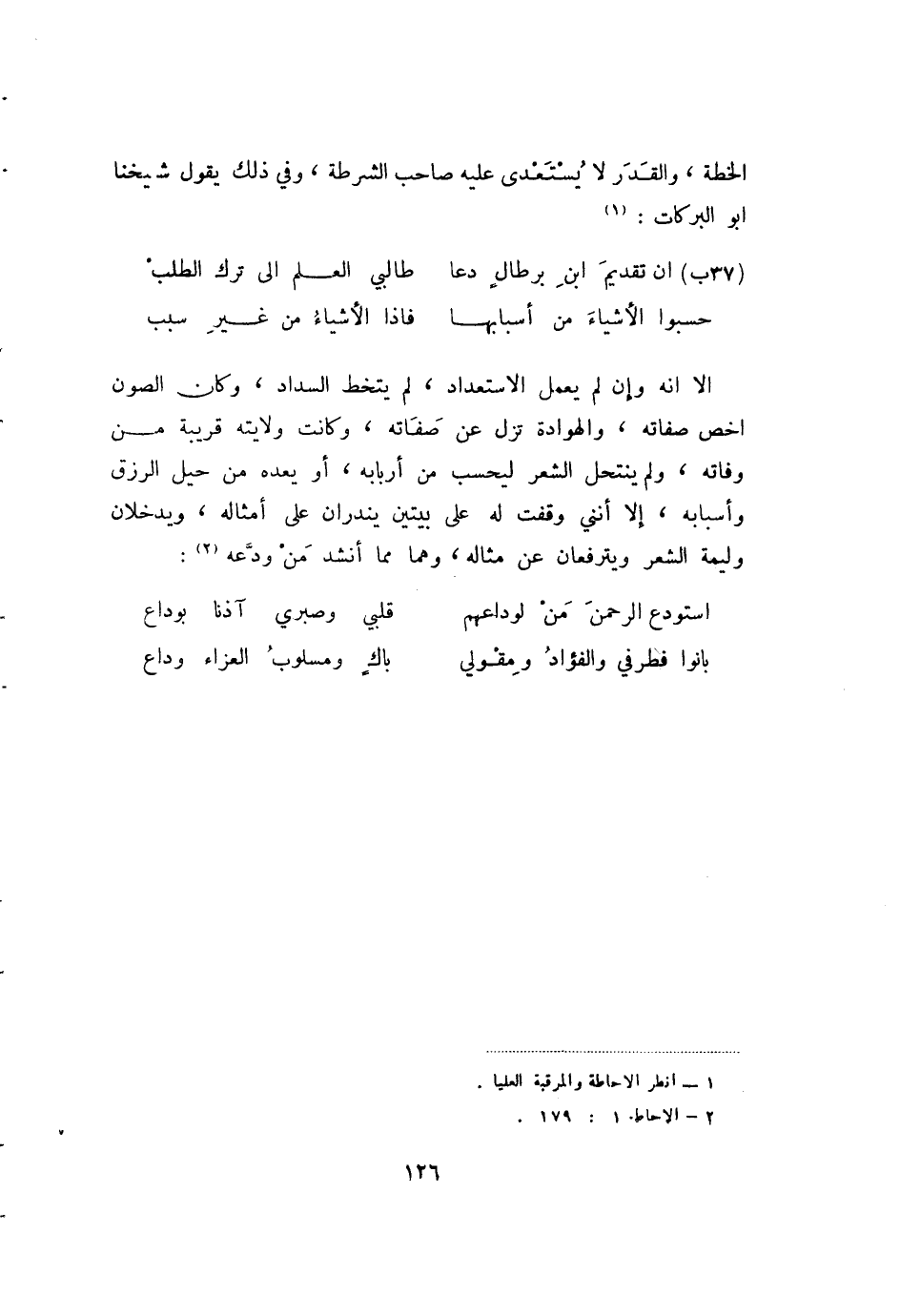 (37ب) إن تقديم ابن برطال دعا ... طالبي العلم إلى ترك الطلب