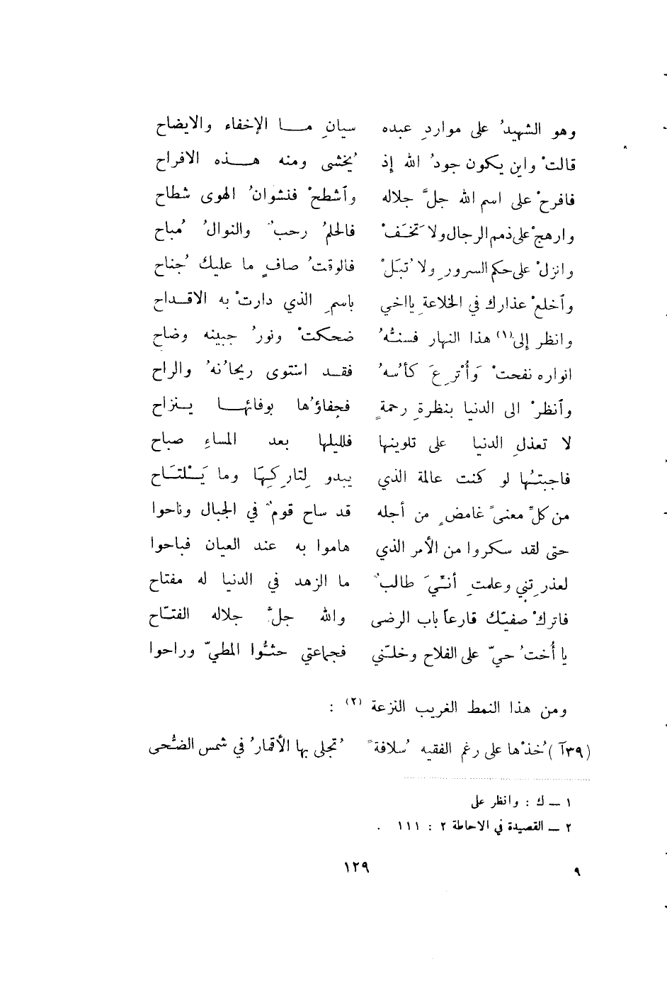 يا أخت حي على الفلاح وخلني ... فجماعتي حثوا المطيّ وراحوا ومن هذا النمط الغريب النزعة (2) :