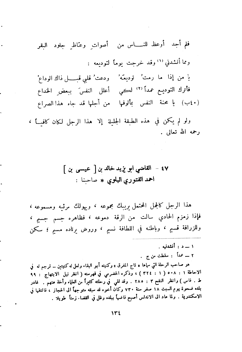 (40ب) يا محنة النفس بمألوفها ... من اجلها قد جاء هذا الصراع ولو لم يكن في هذه الطبقة الجليلة إلا هذا الرجل لكان كافيا، رحمه الله تعالى.