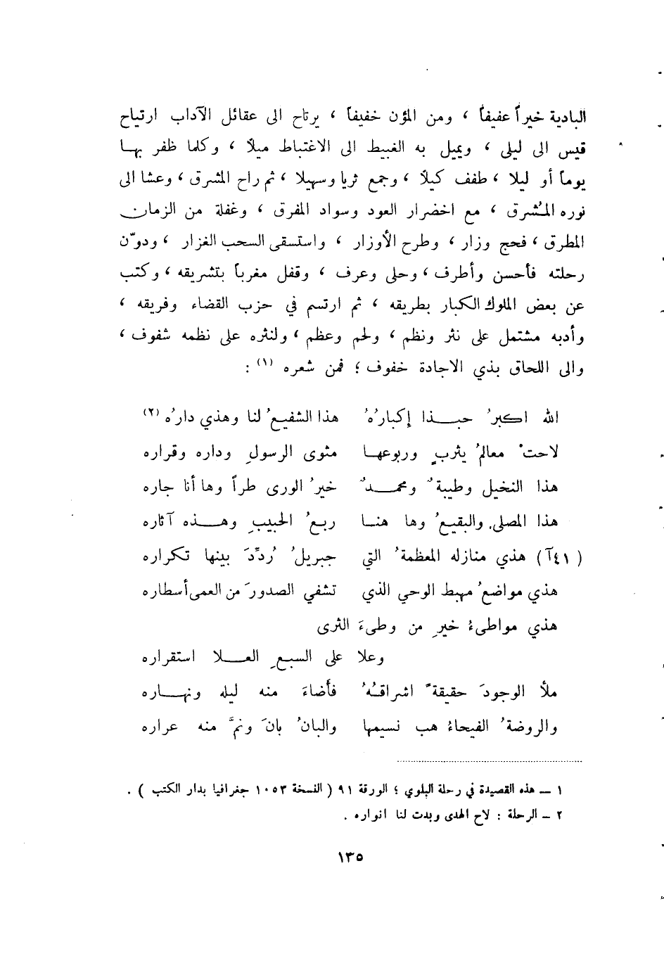 (1) هذه القصيدة في رحلة البلوي؛ الورقة 91 (النسخة 1053 جغرافيا بدار الكتب) .