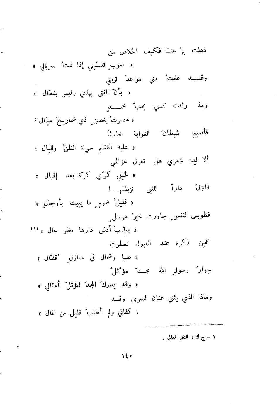 وماذا الذي يثني عنان السرى وقد ... " كفاني ولم اطلب قليل من المال "