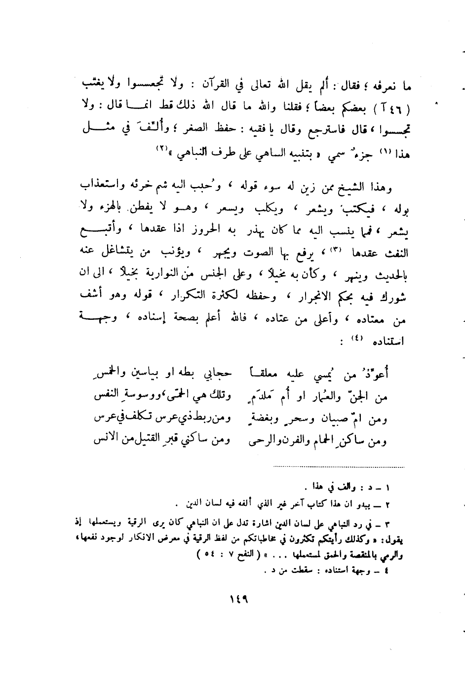 (3) في رد النباهي على لسان الدين إشارة تدل على إن النباهي كان يرى الرقية ويستعملها إذ يقول: " وكذلك رايتكم تكثرون في مخاطبتكم من لفظ الرقية في معرض الإنكار لوجود نفعها، والرمي بالمنقصة والحمق لمستعملها؟. " (النفح 7: 54) .